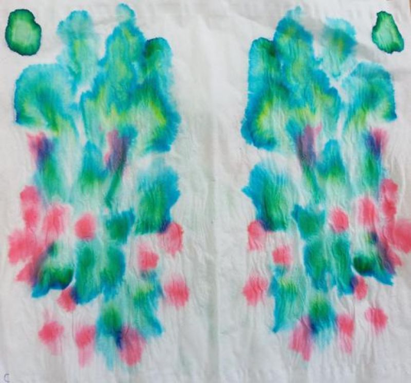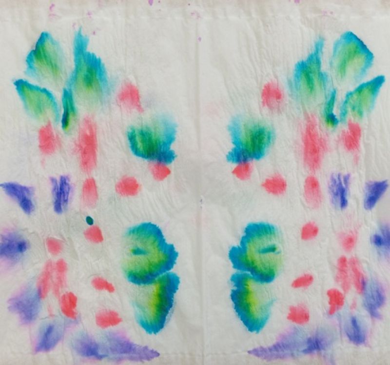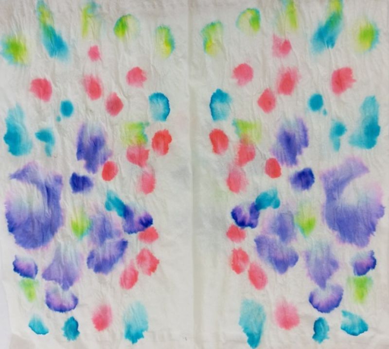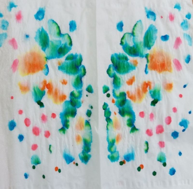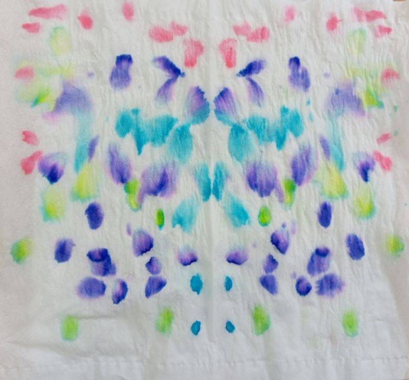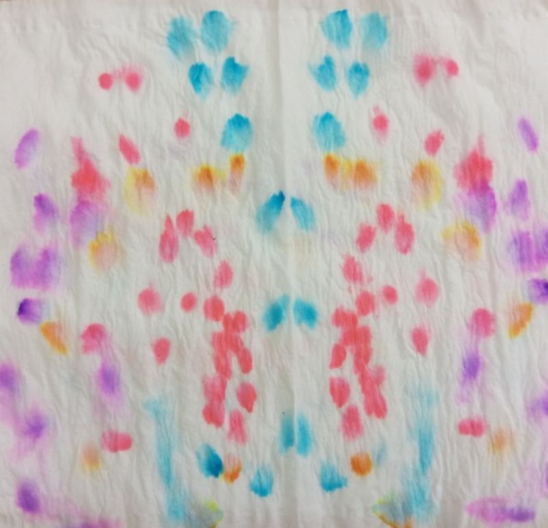 Przedszkolaki opowiadały o swoich umiejętnościach i talentach, a następnie malowały flamastrami kropki na chusteczkach higienicznych i moczyły je delikatnie wodą, podziwiając swoje wielobarwne obrazy.