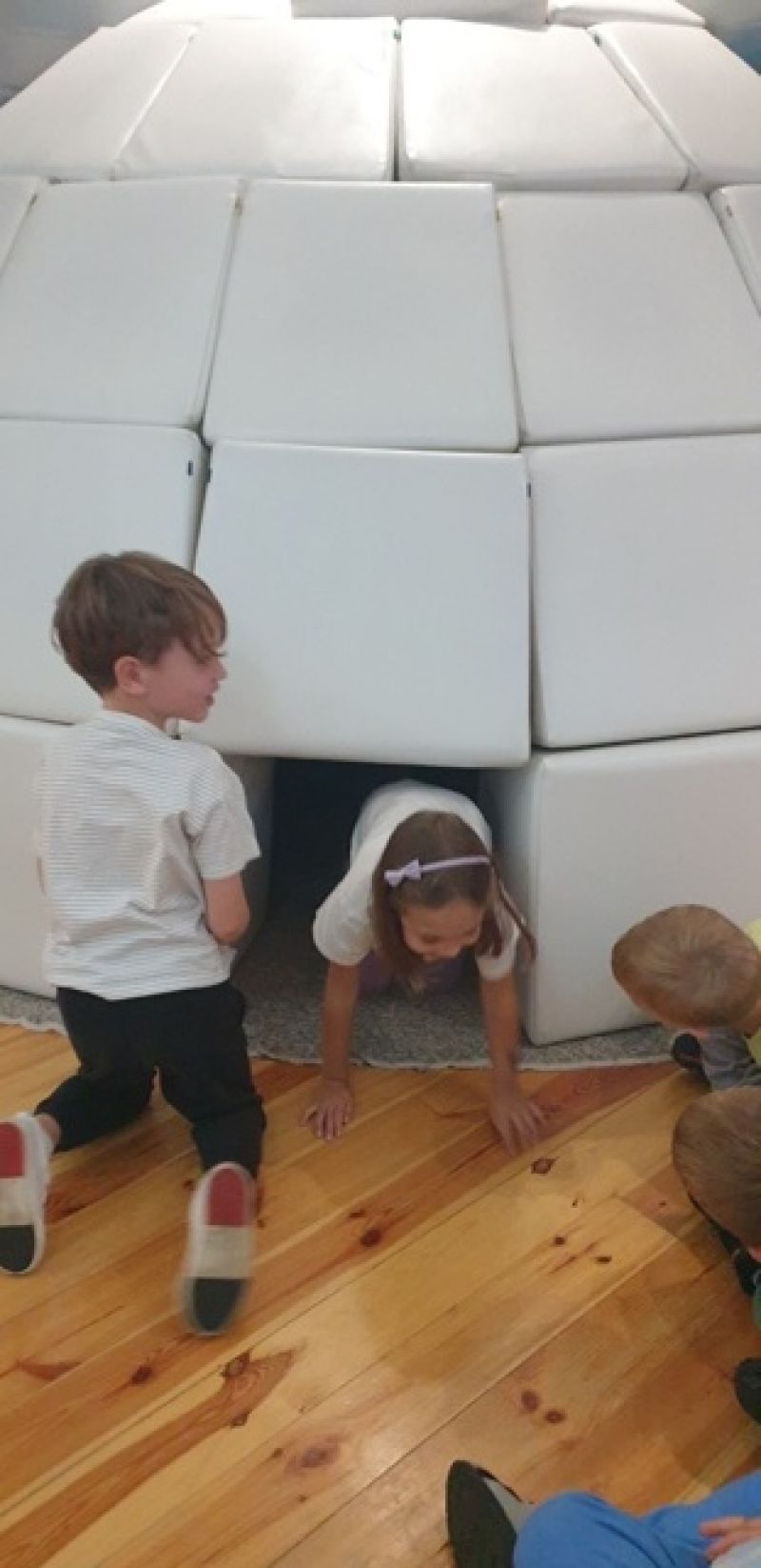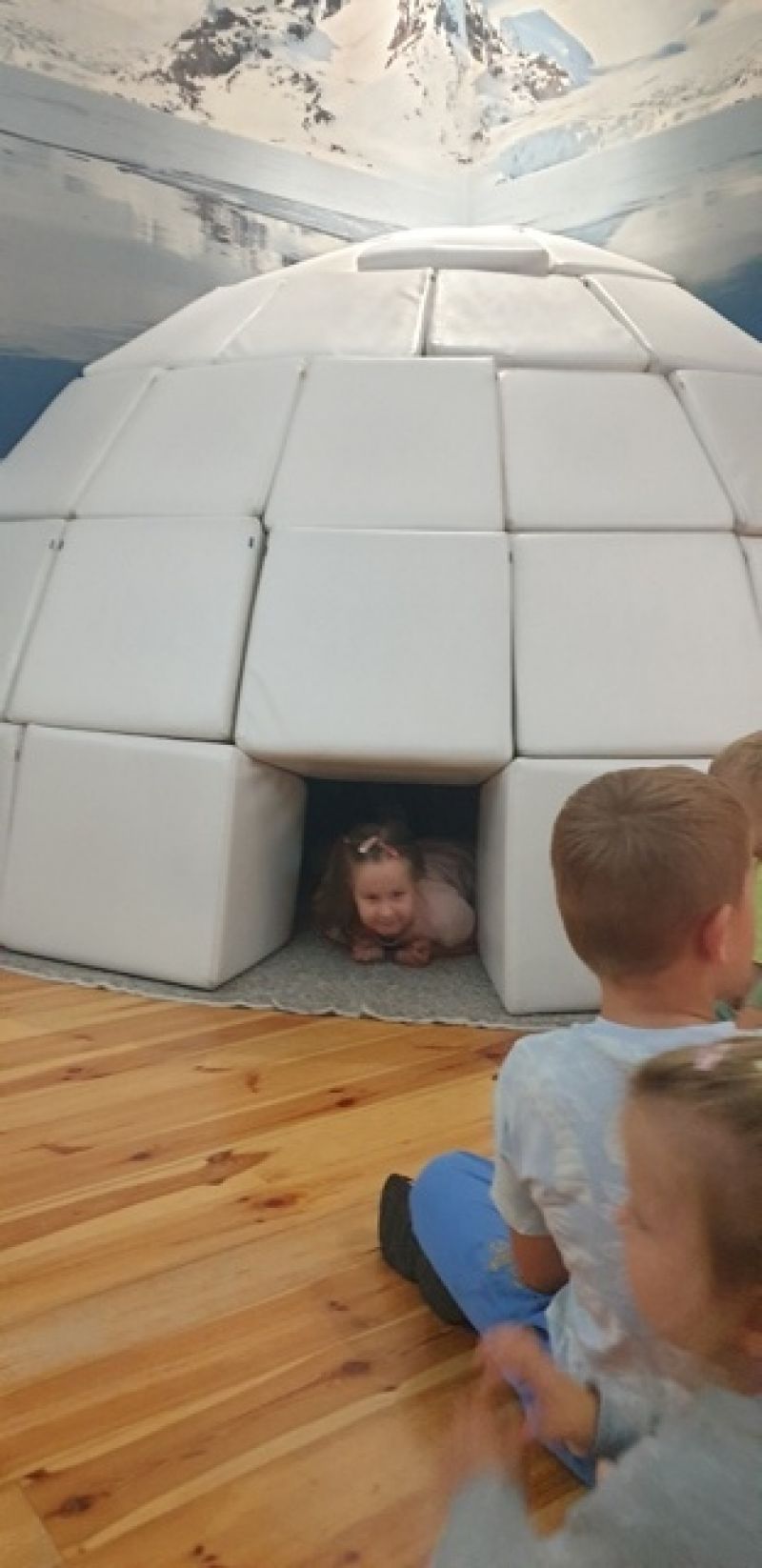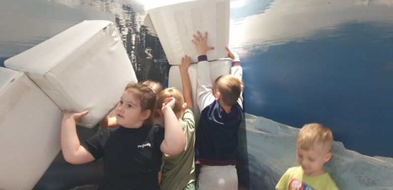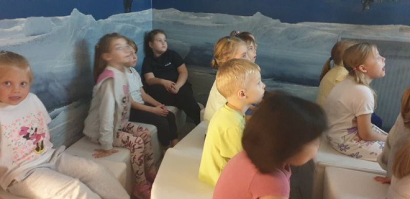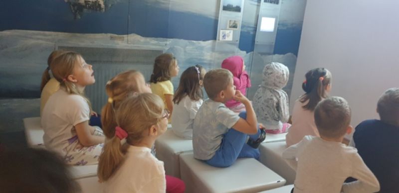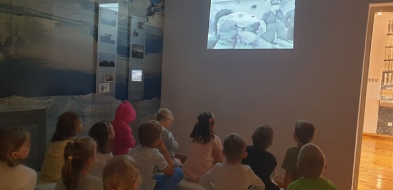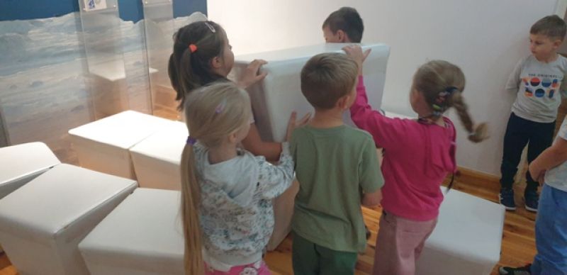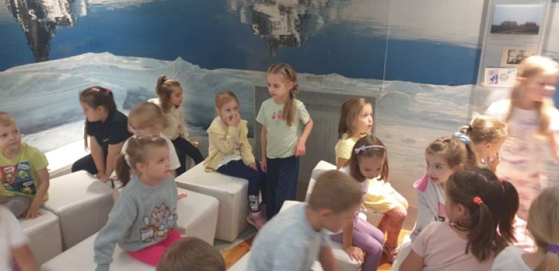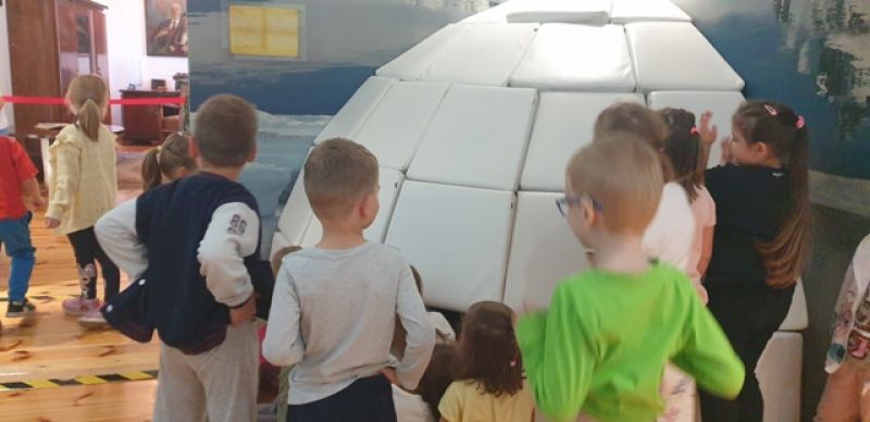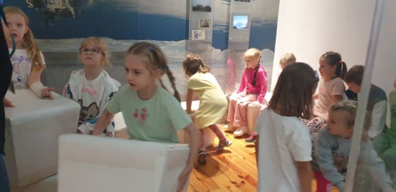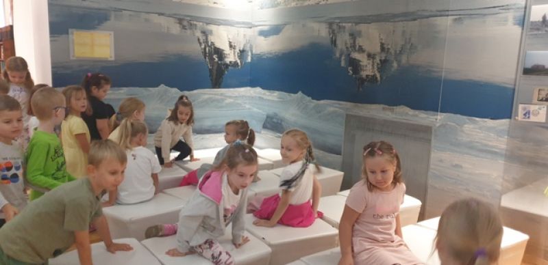 16.09.2025 - dzieci z grupy V odwiedziły Muzeum Historyczne w Legionowie. Poznały życie i twórczość Aliny i Czesława Centkiewiczów - Honorowych Obywateli Miasta Legionowa. Obejrzały prezentację poświęconą historii I Polskiej Wyprawy Polarnej, kolekcję pamiątek po pisarzach i podróżnikach. Dzieci obejrzały film animowany zrealizowany na podstawie książki „Zaczarowana Zagroda”. Następnie mogły wspólnie zbudować igloo i poczuć się jak na biegunie.