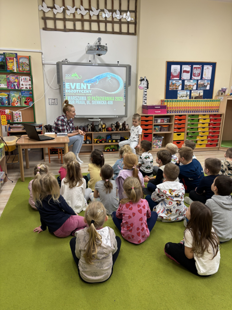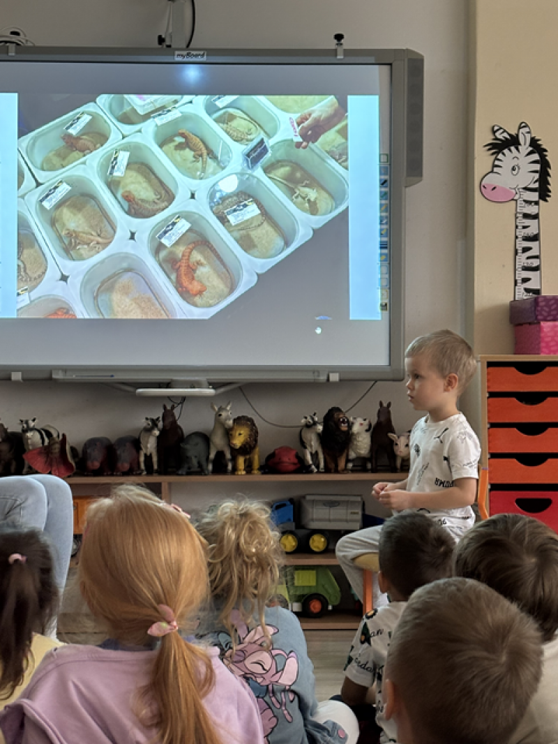 Na początku swojej prezentacji Kacperek opowiedział dzieciom o Evencie Egzotycznym, w którym uczestniczył, wymienił nazwy zwierząt, które tam spotkał.