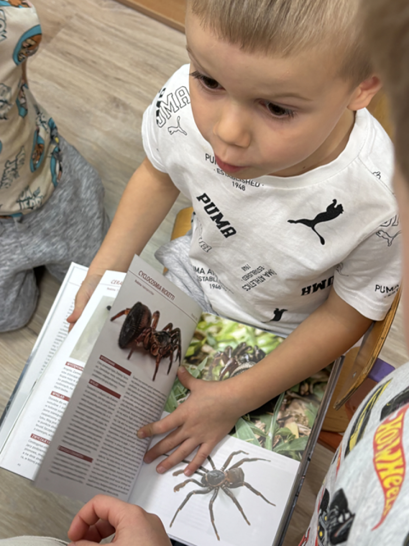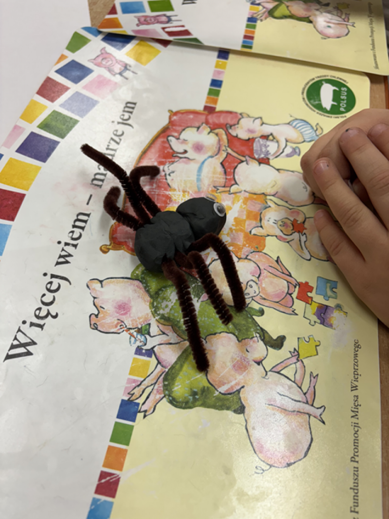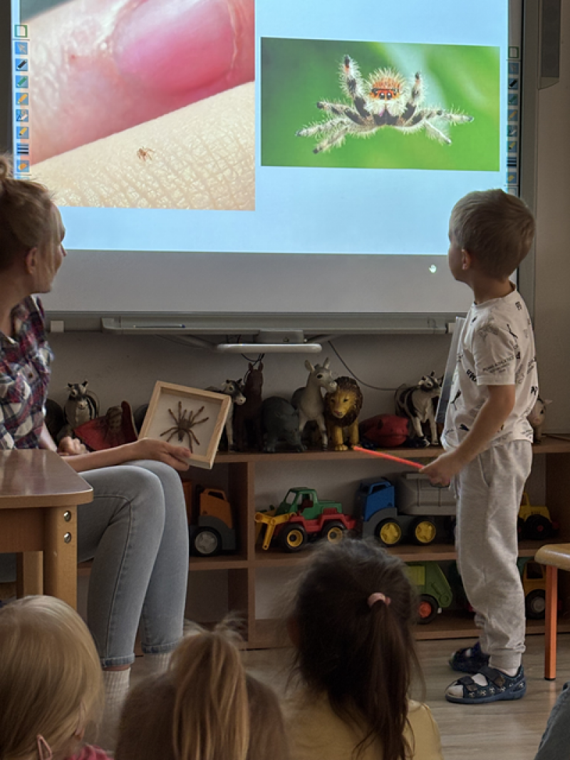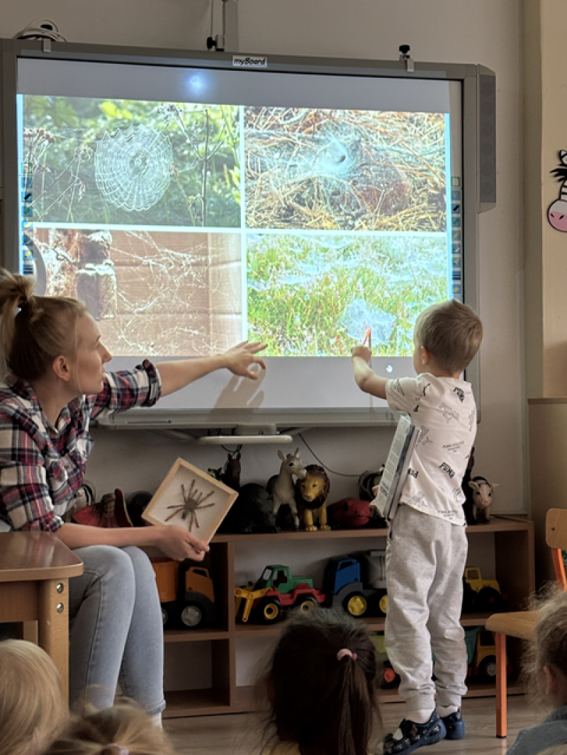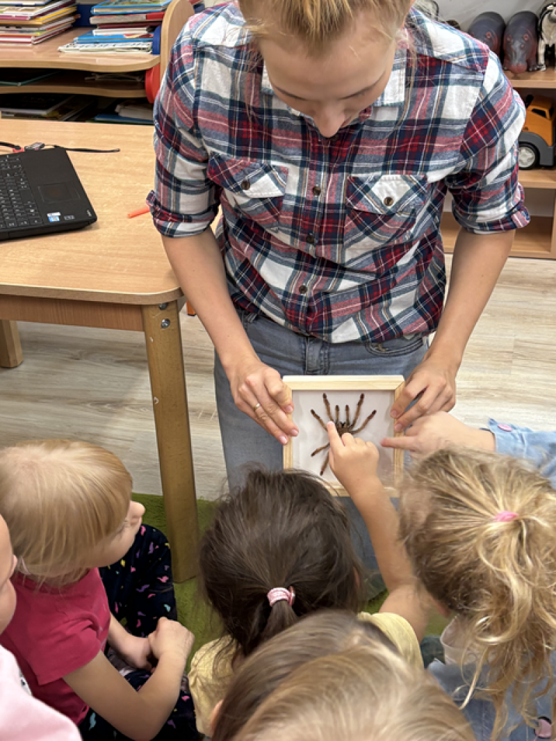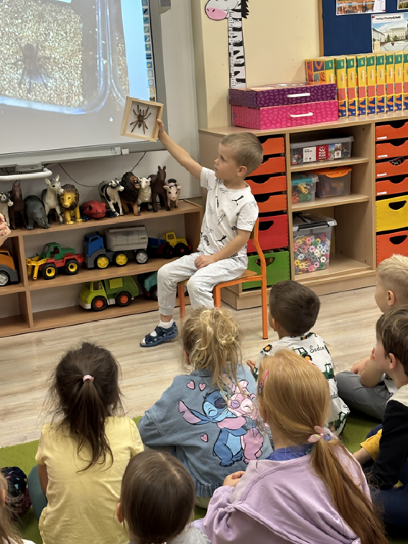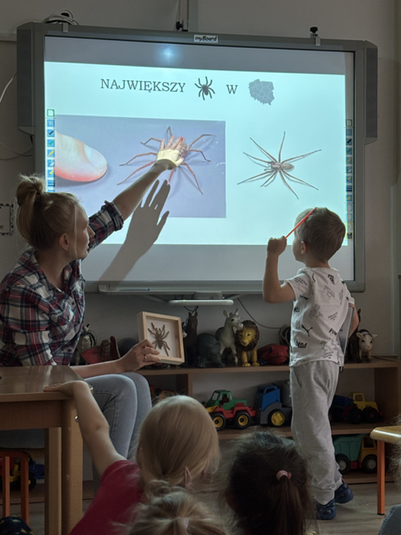 Zajęcia miały na celu oswojenie dzieci z pająkami i ukazanie niezwykle pożytecznej funkcji spełnianej przez te zwierzęta w przyrodzie.