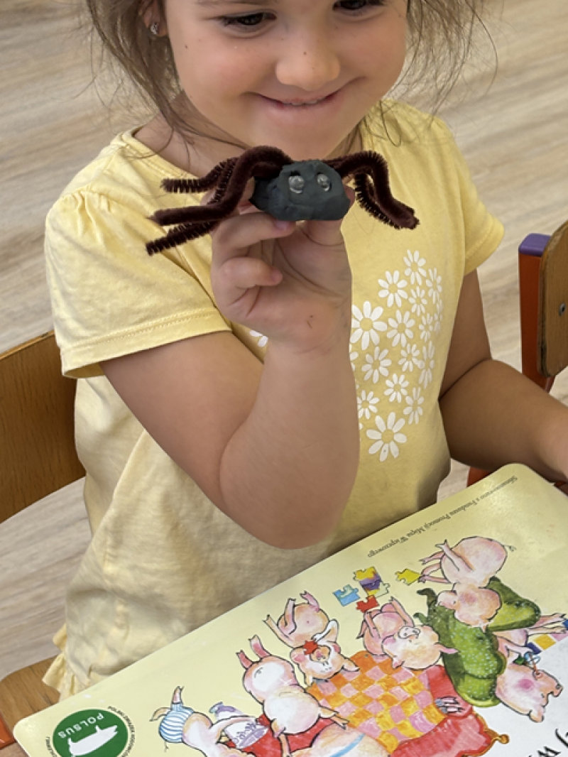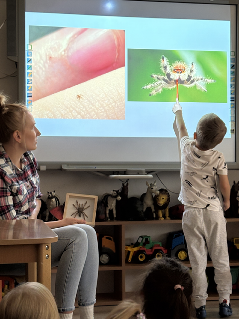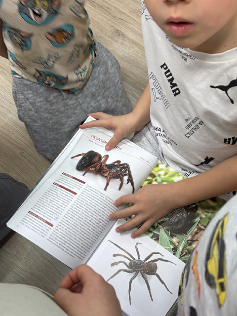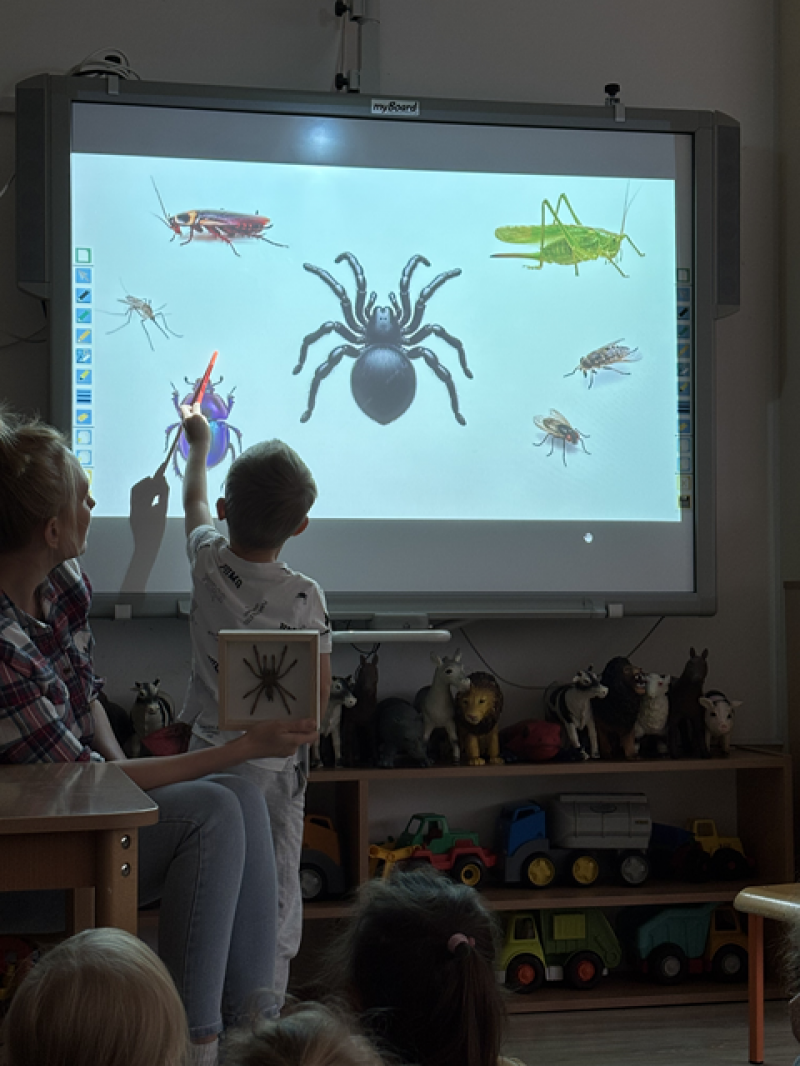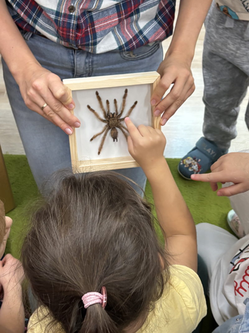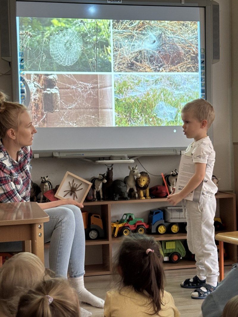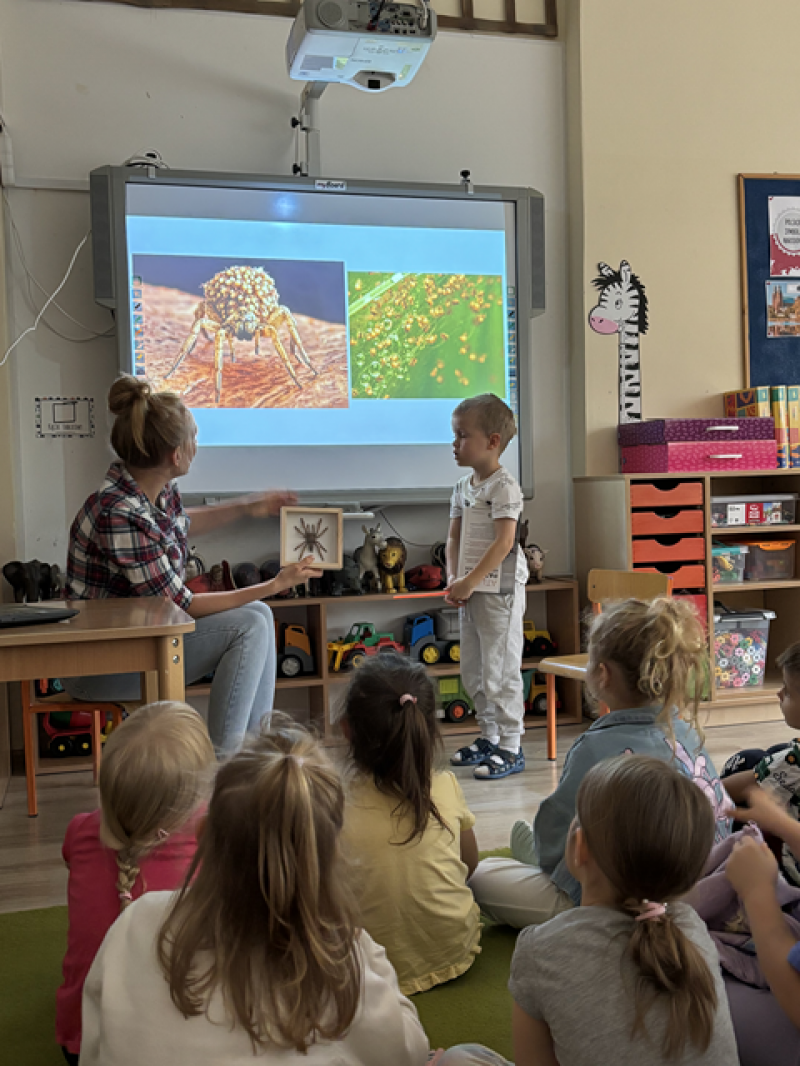 Zajęcia miały na celu oswojenie dzieci z pająkami i ukazanie niezwykle pożytecznej funkcji spełnianej przez te zwierzęta w przyrodzie.