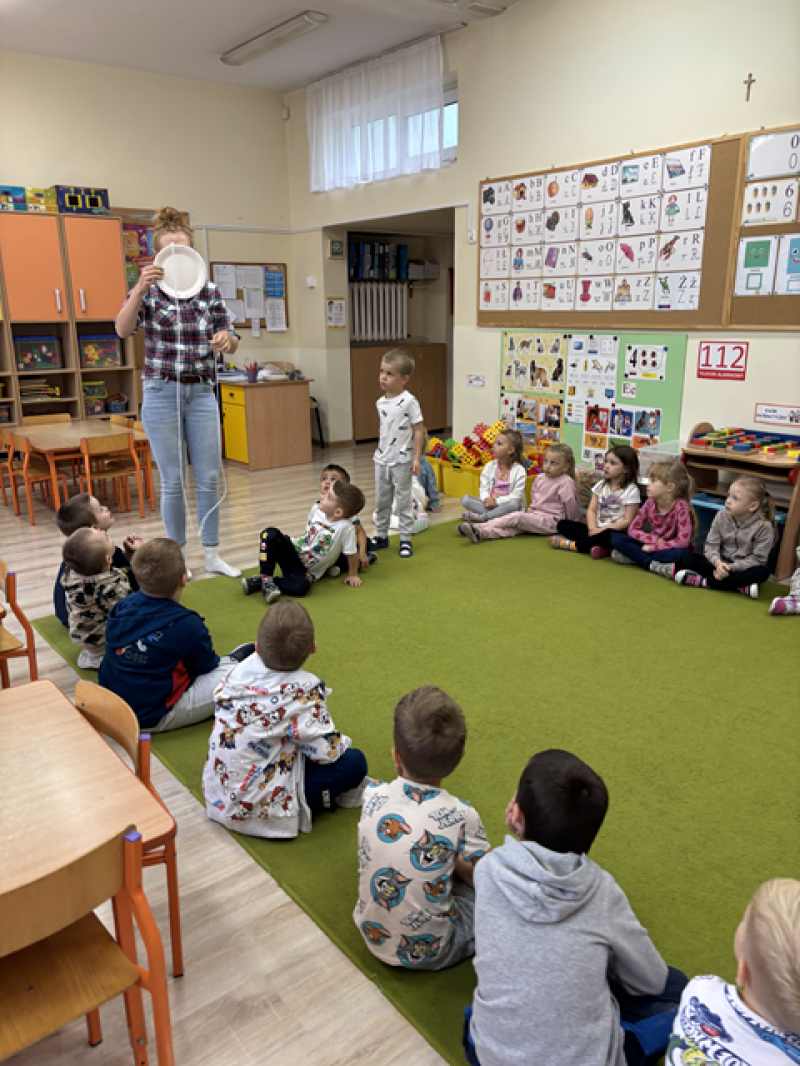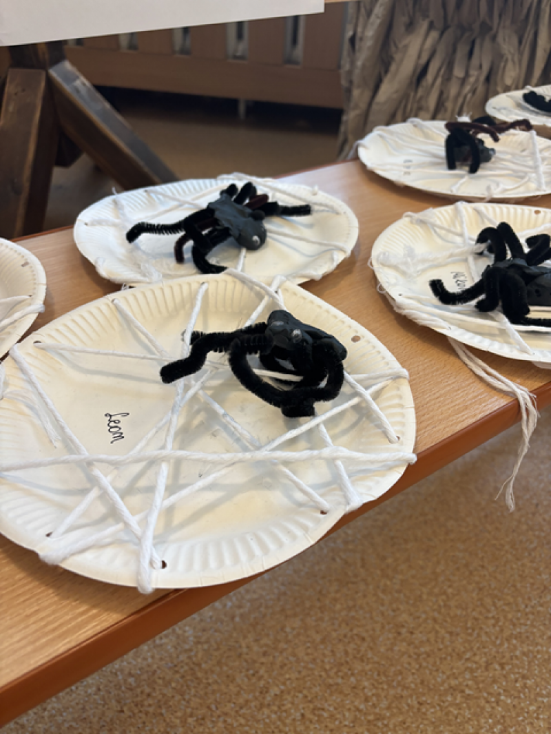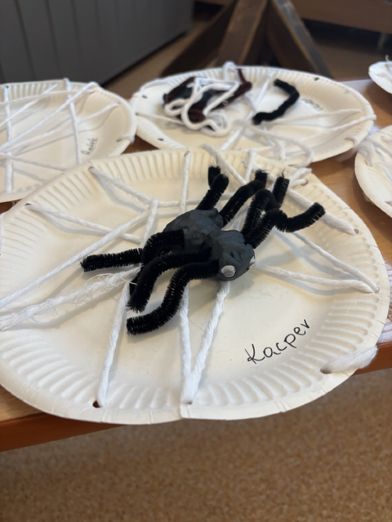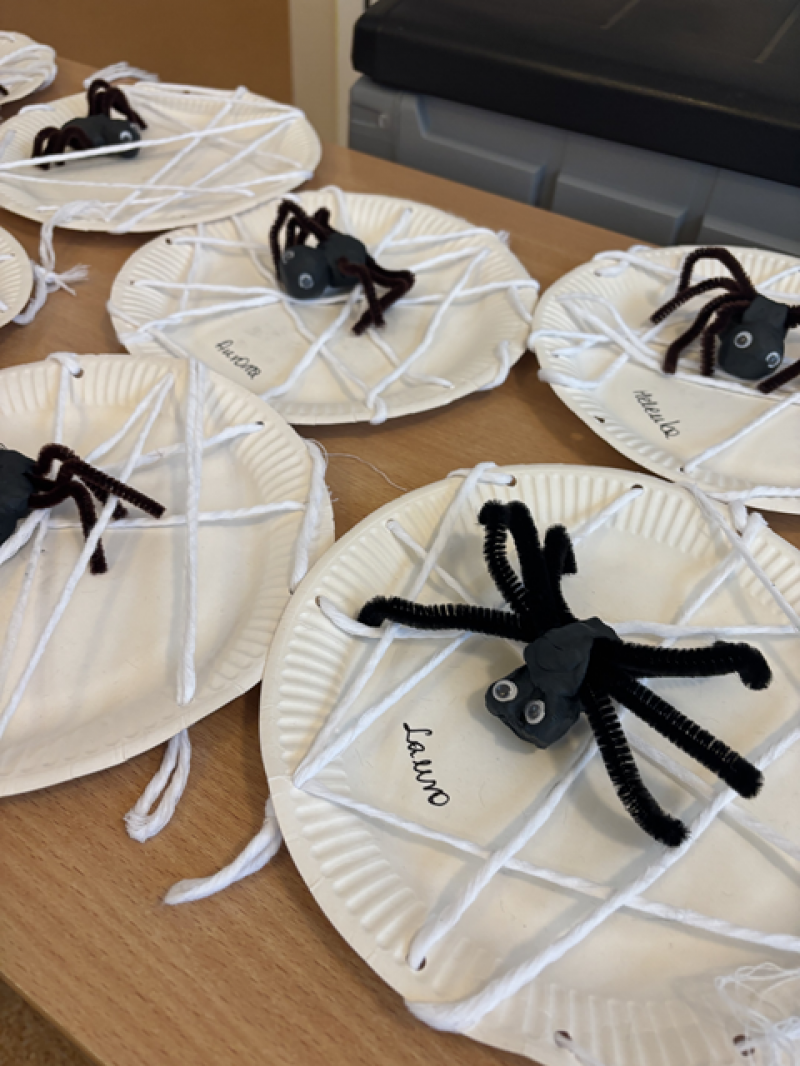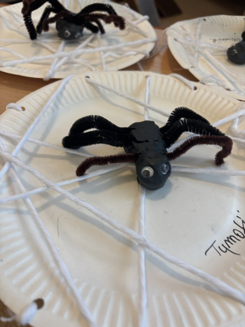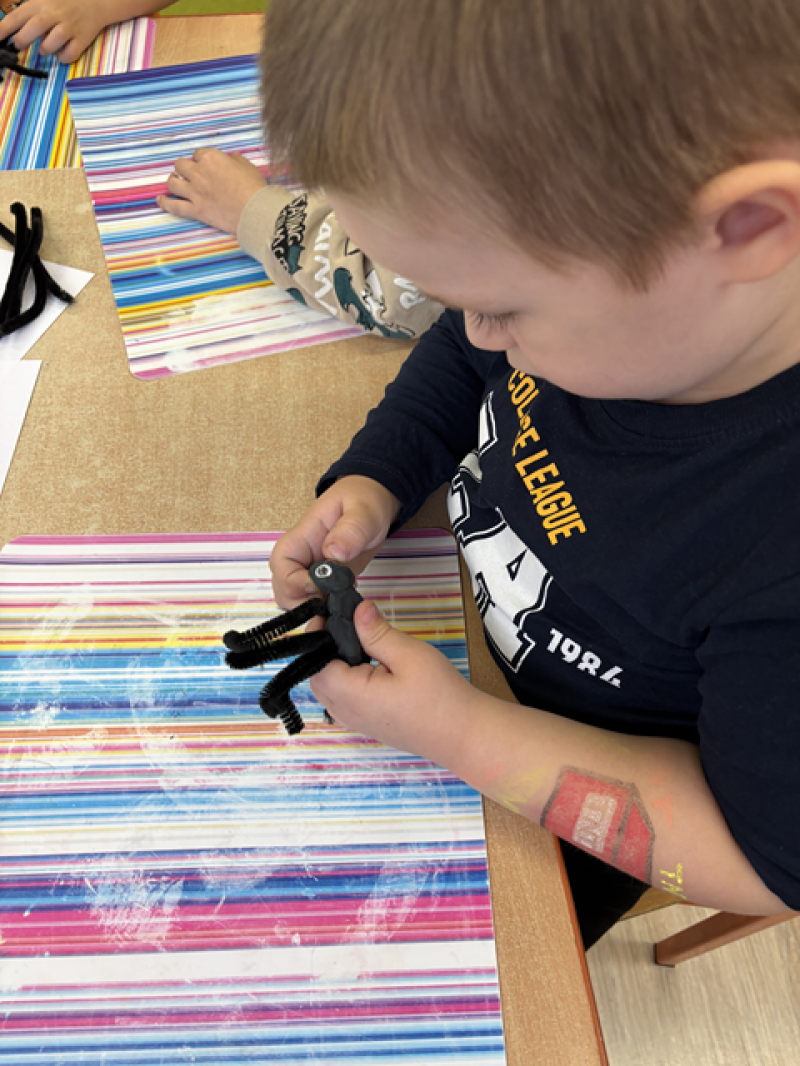 Dzieci rozwiązywały karty pracy, tworzyły pajęczą sieć z talerzyka papierowego i sznurka, a także wykonały własnego pająka z plasteliny i drucików kreatywnych.