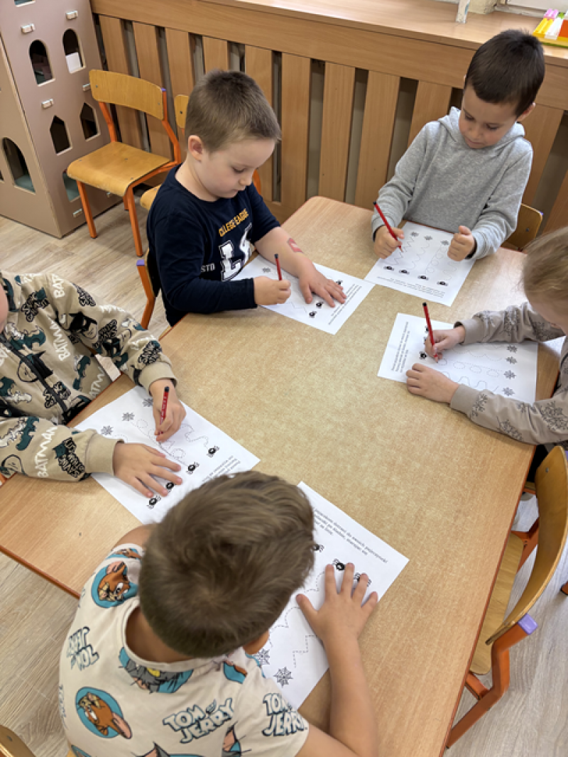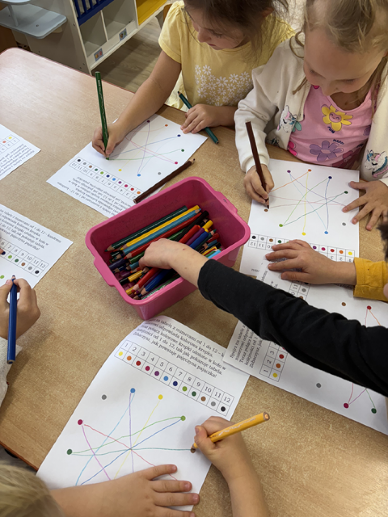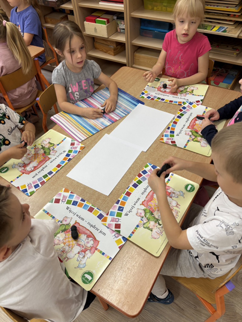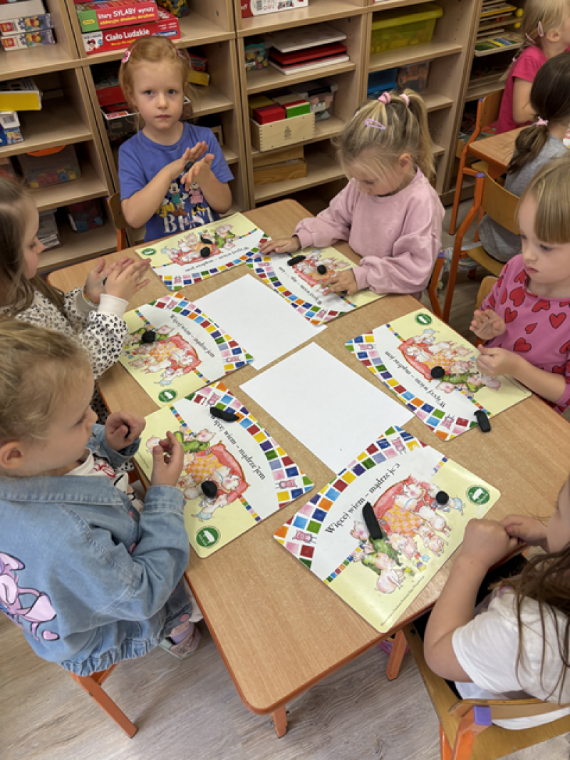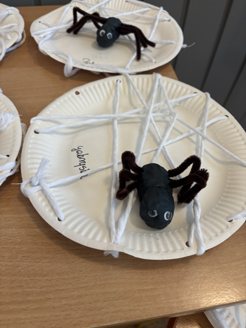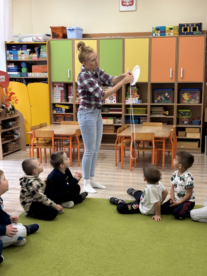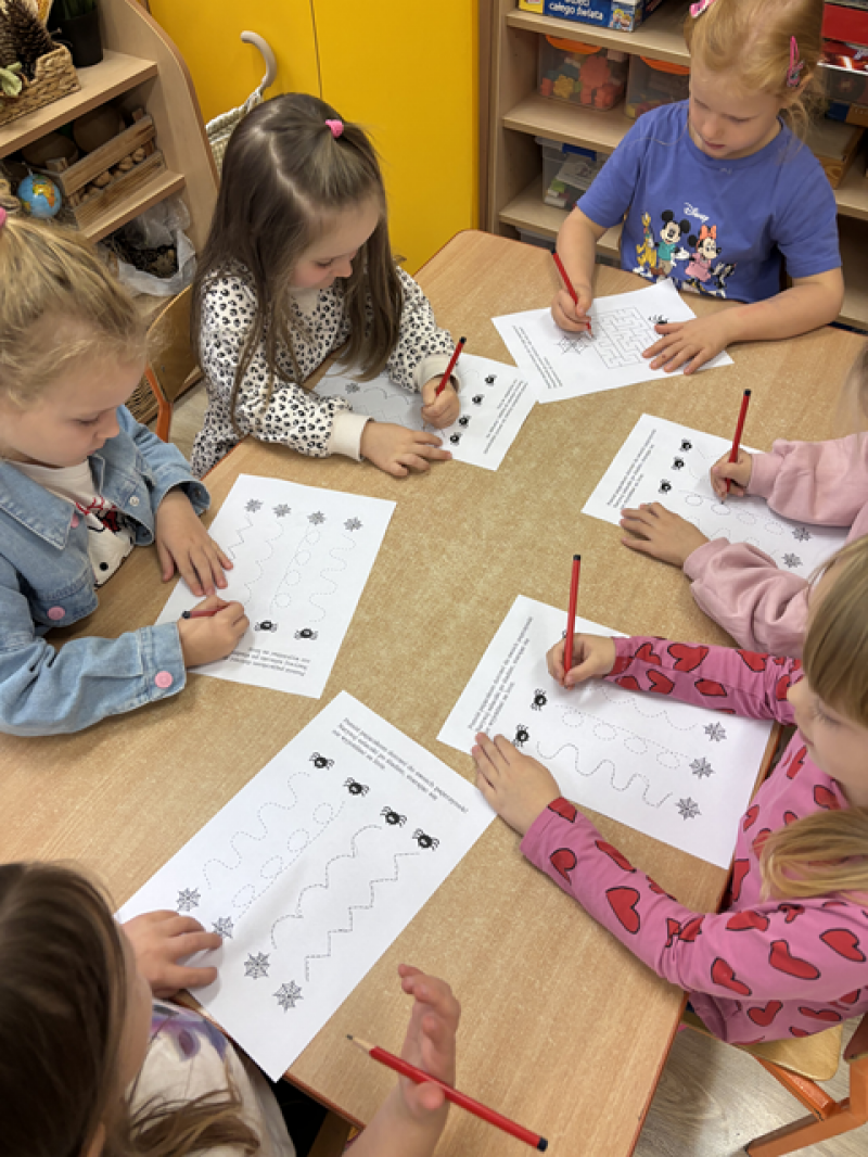Dzieci rozwiązywały karty pracy, tworzyły pajęczą sieć z talerzyka papierowego i sznurka, a także wykonały własnego pająka z plasteliny i drucików kreatywnych.