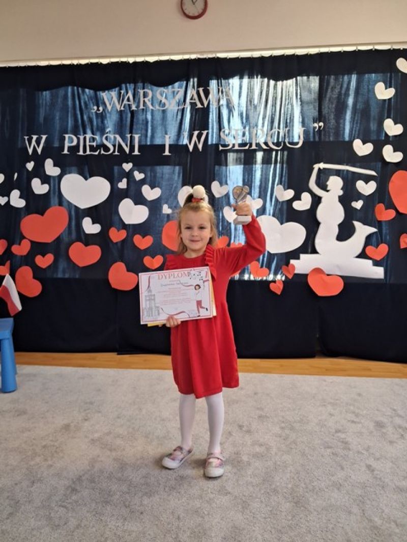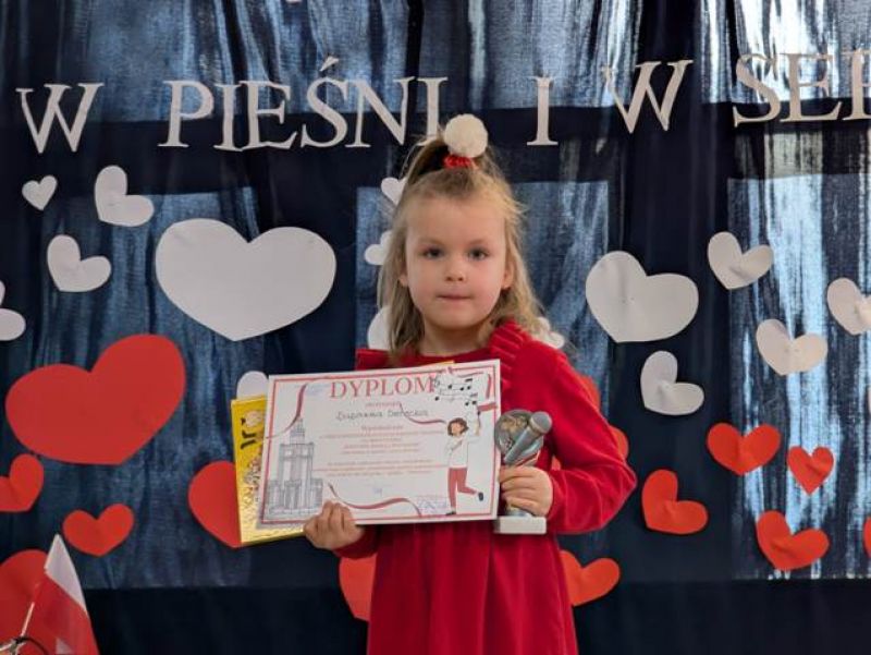 13.11.2025 - Serdeczne gratulacje dla Zuzi z grupy V, która reprezentowała nasze Przedszkole w Międzyprzedszkolnym Konkursie Piosenki Patriotycznej "Jesteśmy Polką i Polakiem ". Motywem przewodnim była "Warszawa w pieśni i sercu dziecka". Organizatorem konkursu było Przedszkole Miejskie Integracyjne nr 5 im. Misia Uszatka w Legionowie.