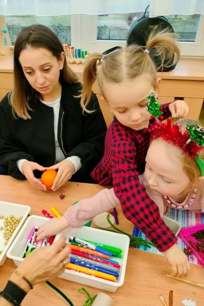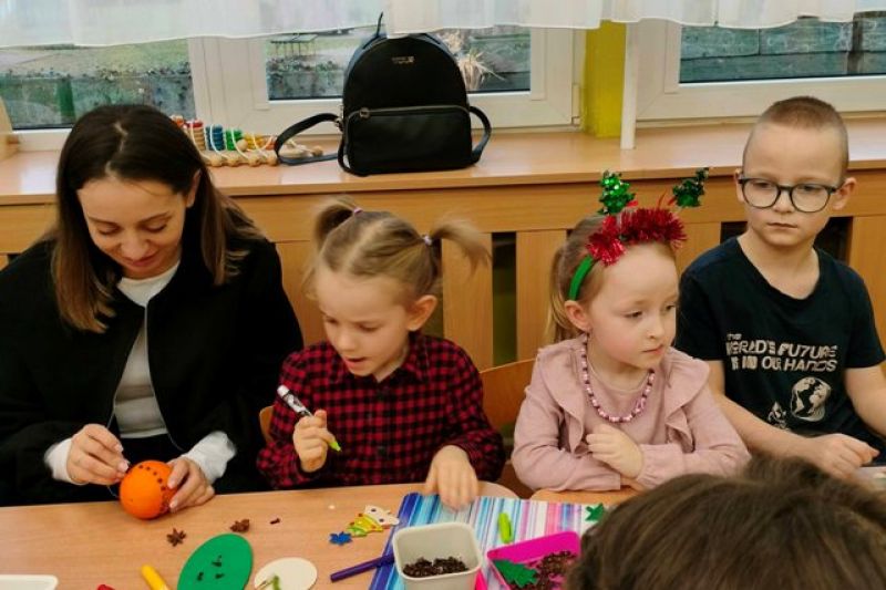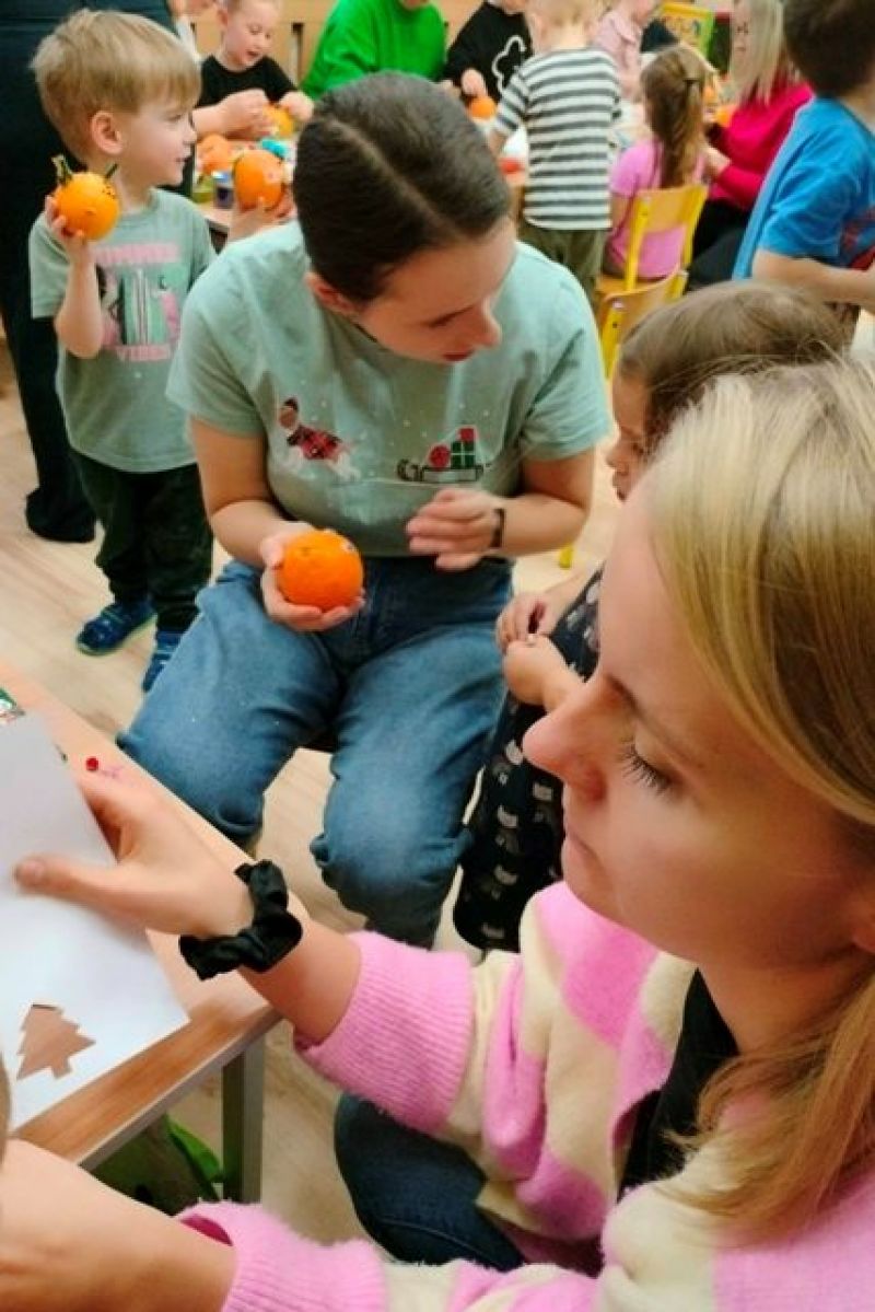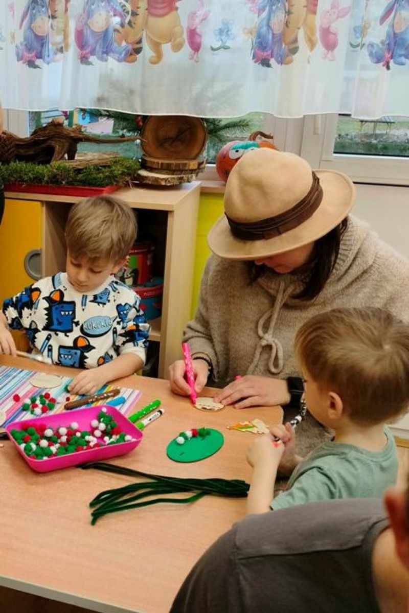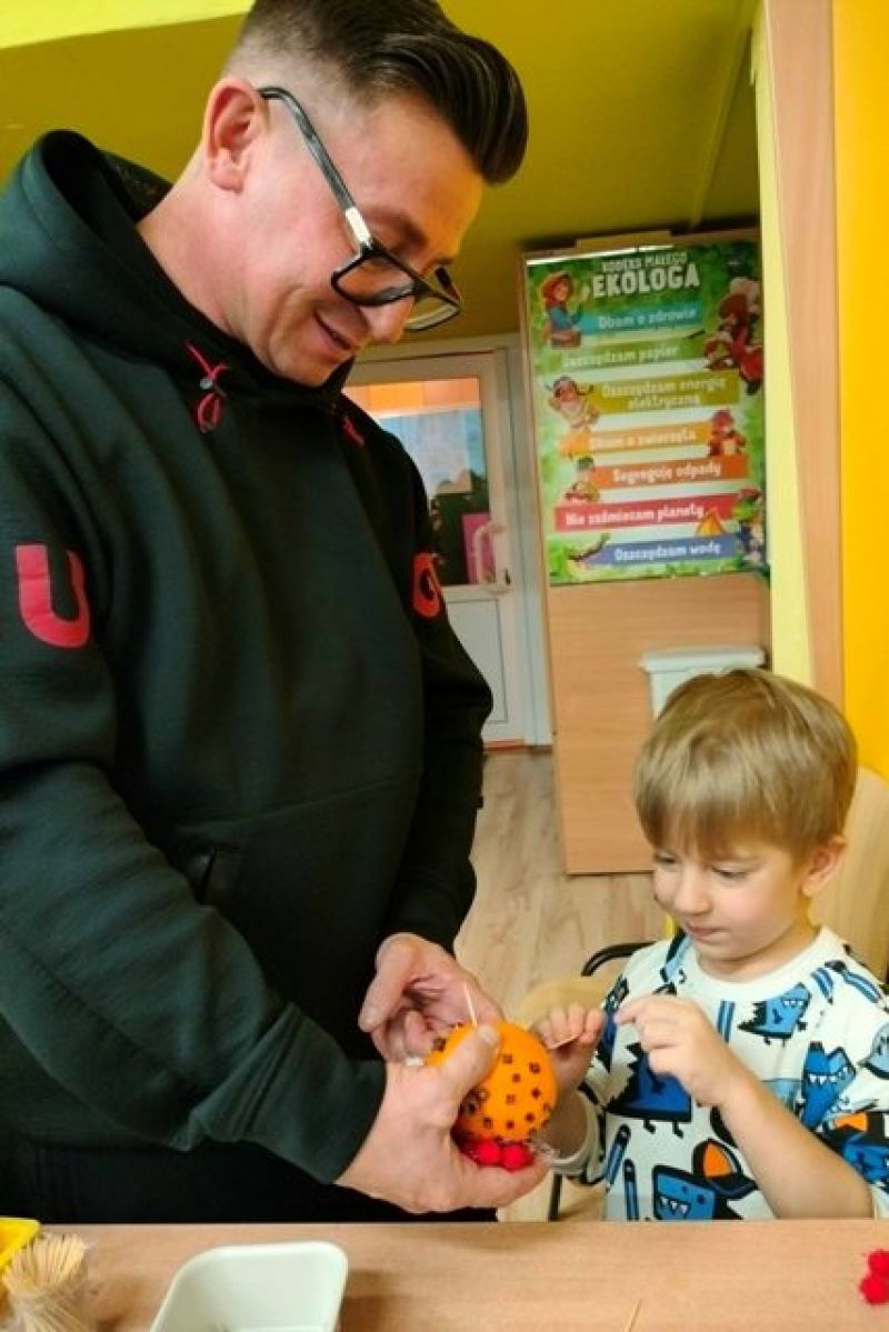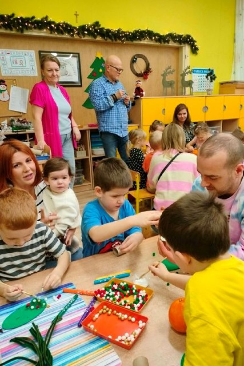 09.12.2025 r. razem z rodzicami tworzyliśmy ozdoby choinkowe, niektóre z nich zawisły na naszej grupowej choince. Pozostałe zabraliśmy do domu. Praca z bliskimi jest zawsze bardzo twórcza. Cieszymy się, że wszyscy w ten wyjątkowy czas mieli przy sobie kogoś bliskiego.