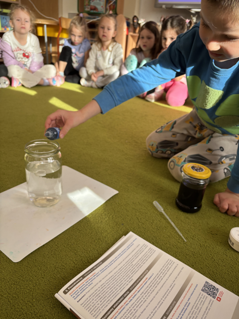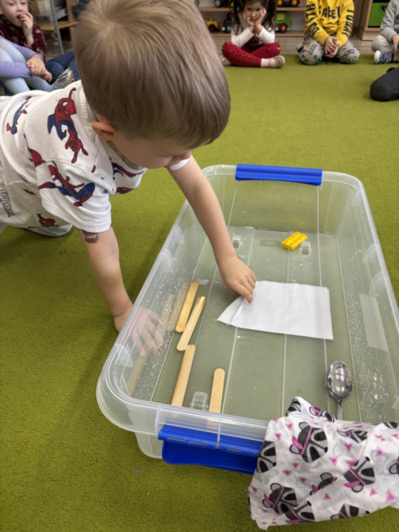 Przedszkolaki rozbudzały swoją ciekawość, miały możliwość nauki przez działanie, starały się wyciągać wnioski i zrozumieć dlaczego tak się dzieje.