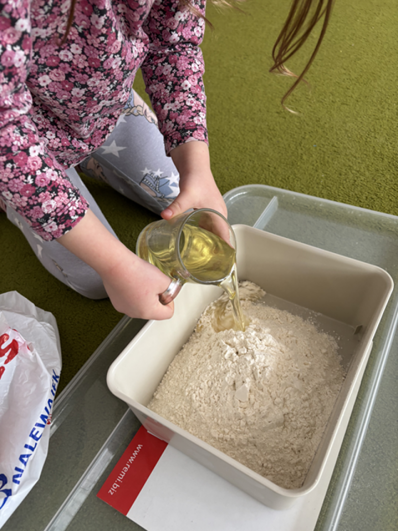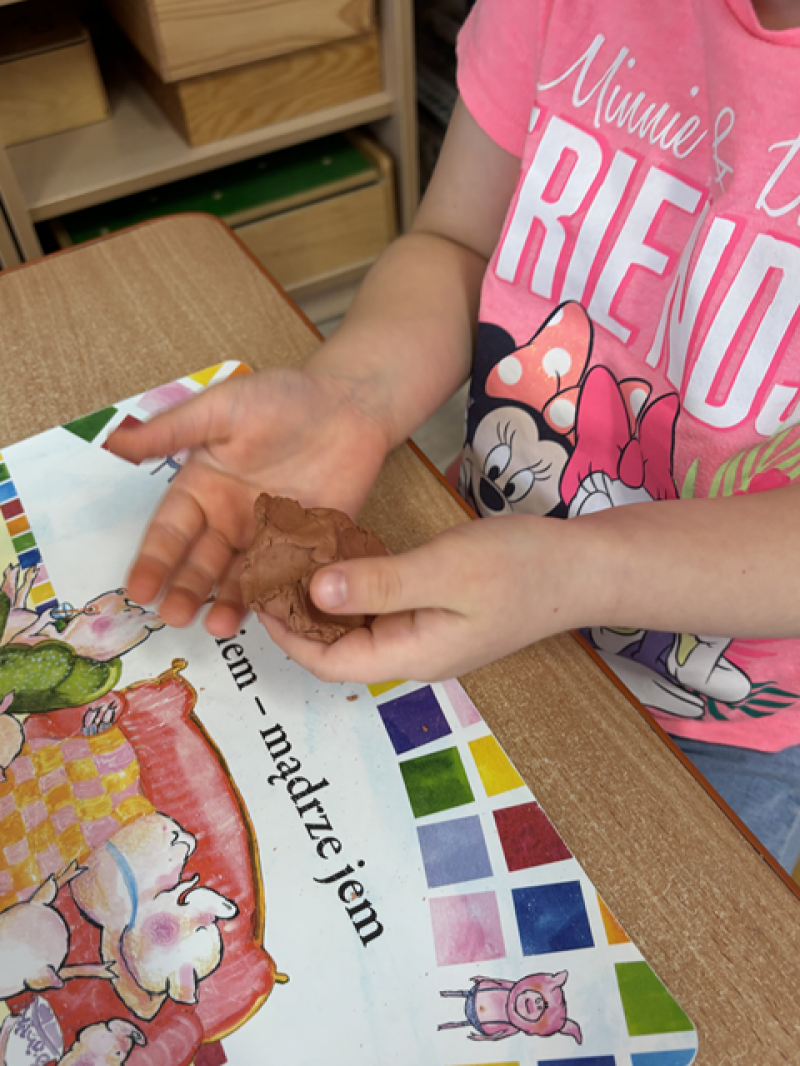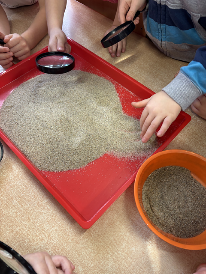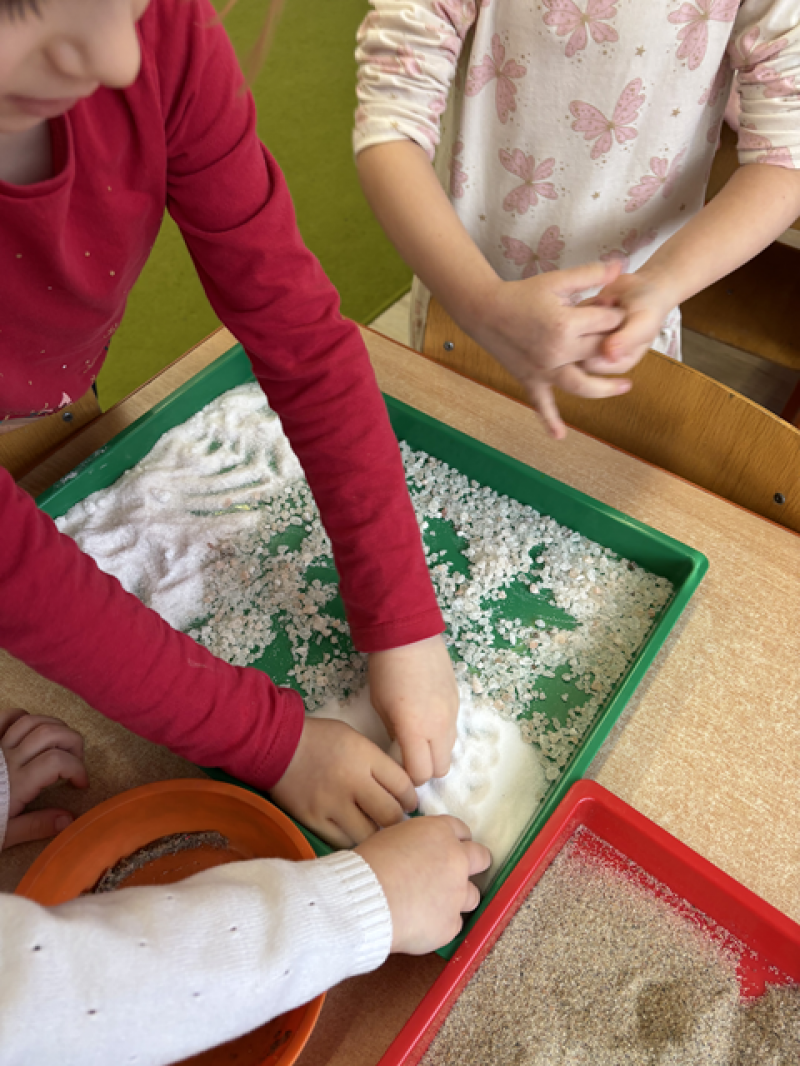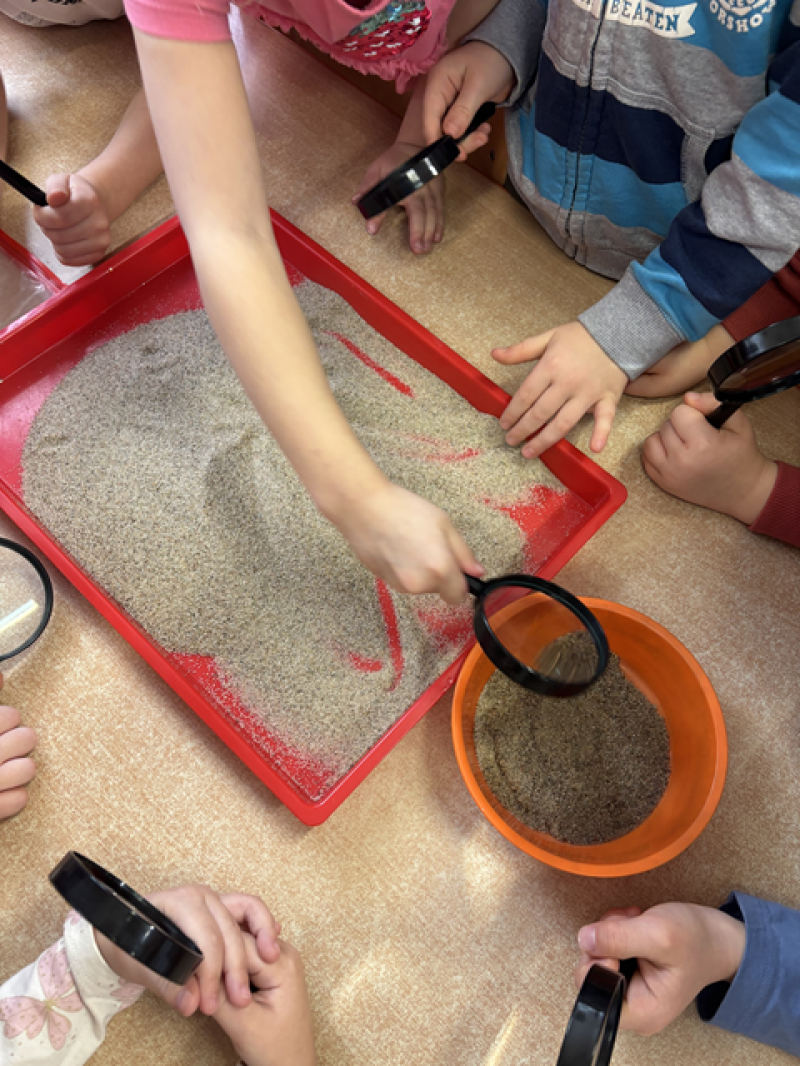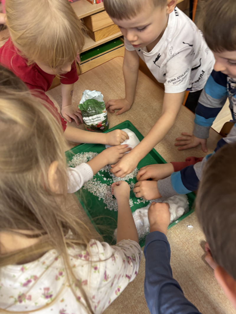 - Wykonanie piasku kinetycznego (doświadczanie przez dotyk),