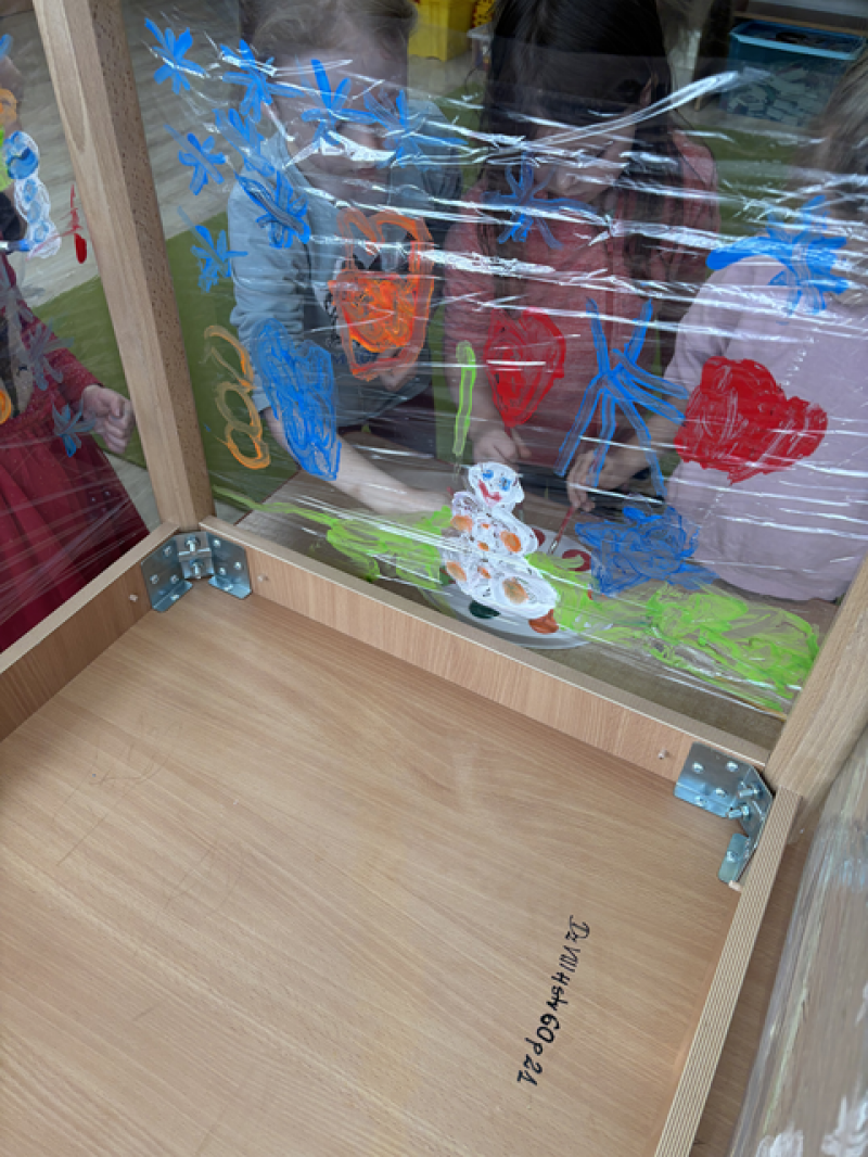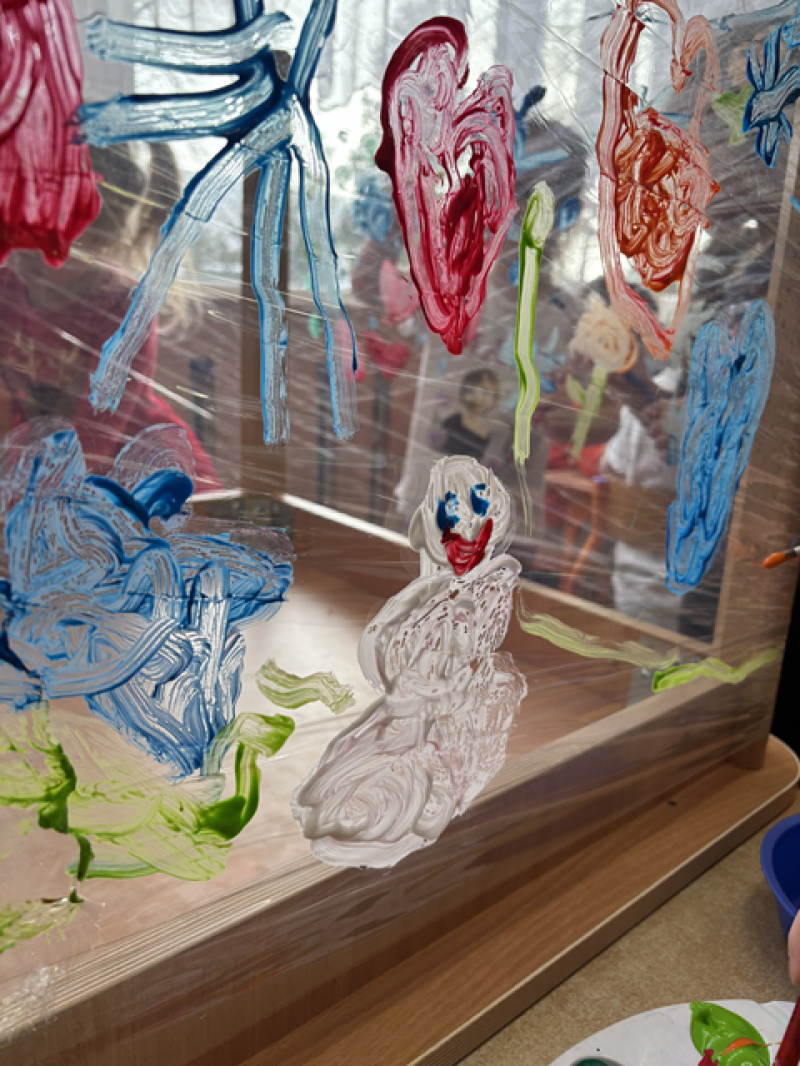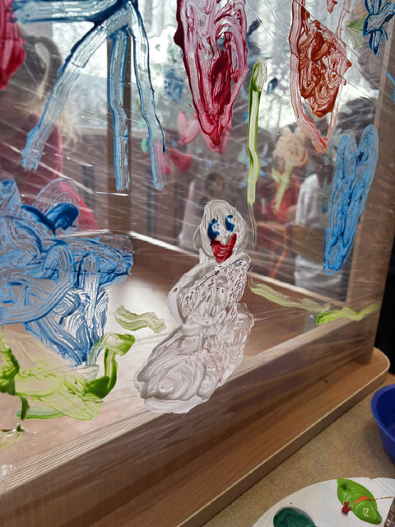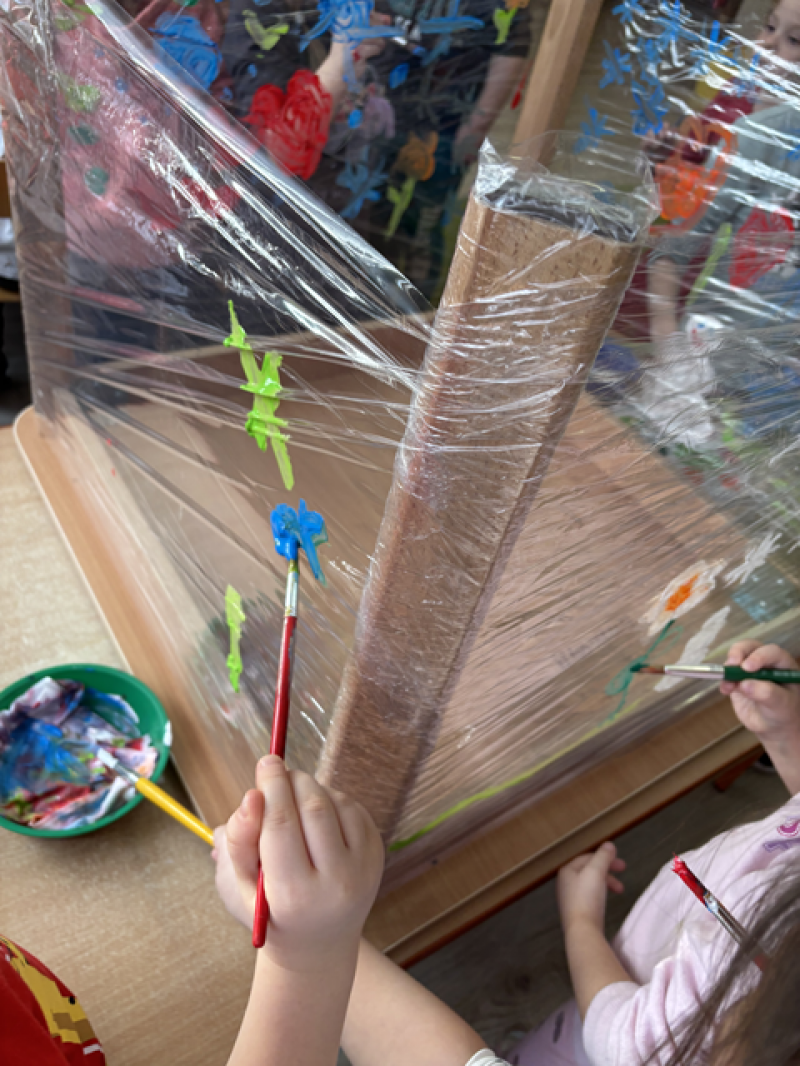 - Malowanie na folii stretch i materiale bawełnianym (sprawdzanie jak farby zachowują się na różnych materiałach),