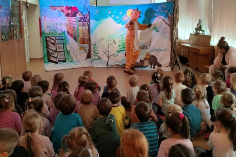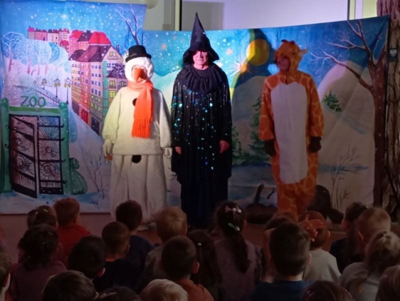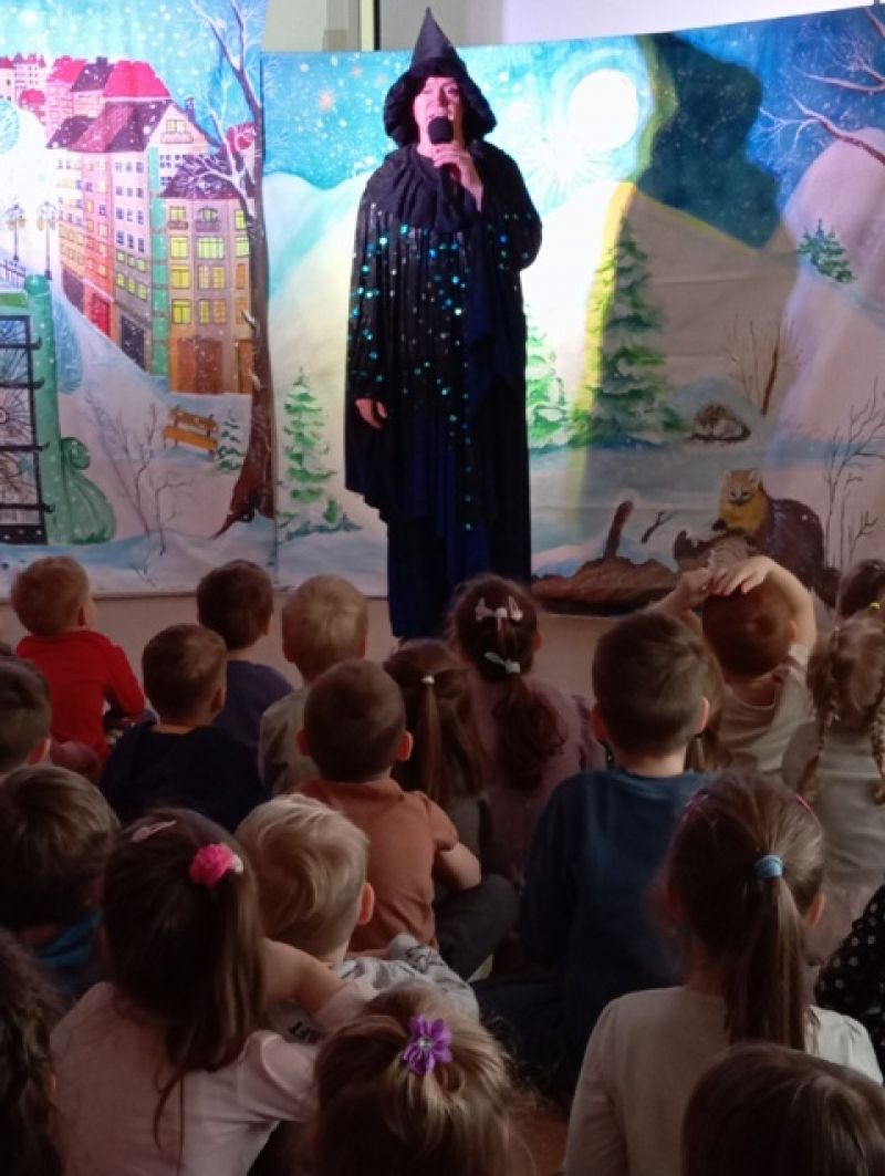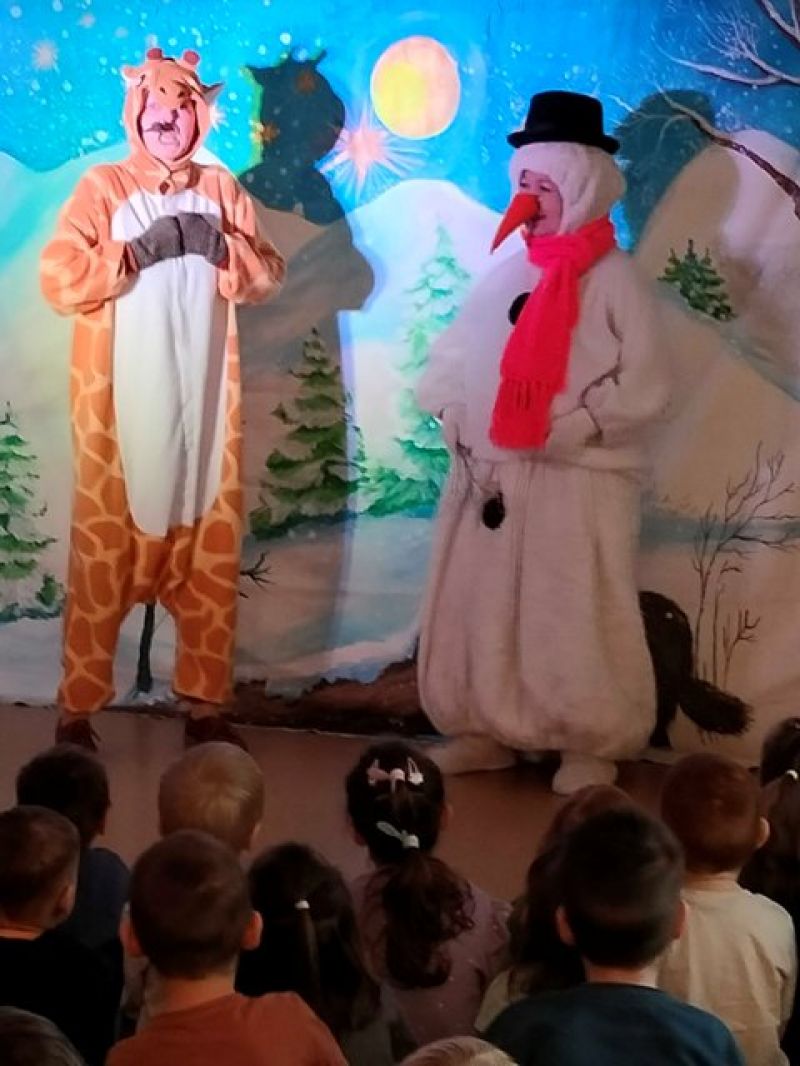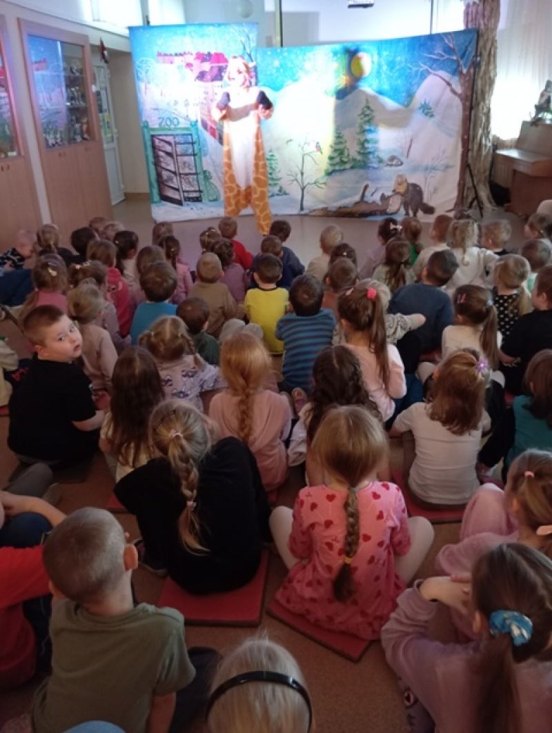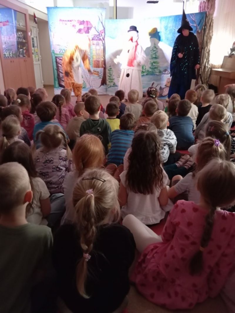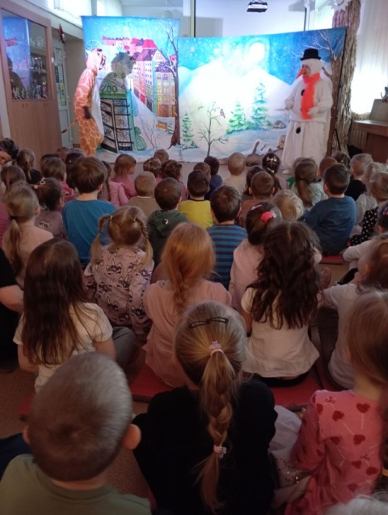 25.02.2026 r. gościliśmy w przedszkolu aktorów teatru Dur-Moll, którzy przedstawili nam sztukę „Magiczny płatek śniegu”.