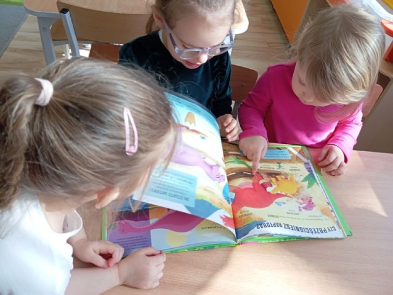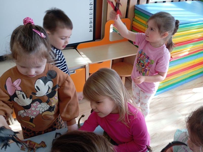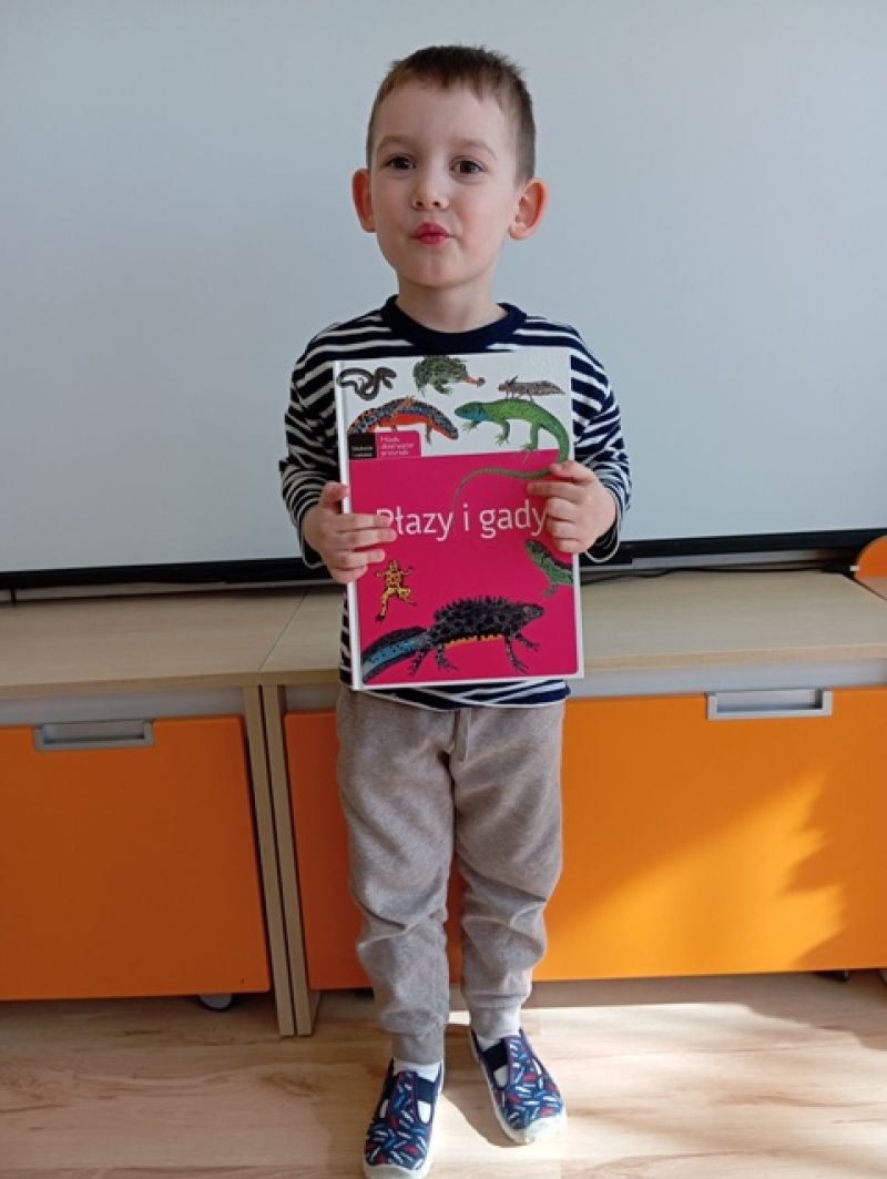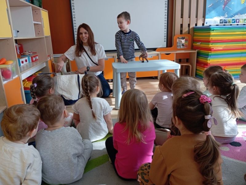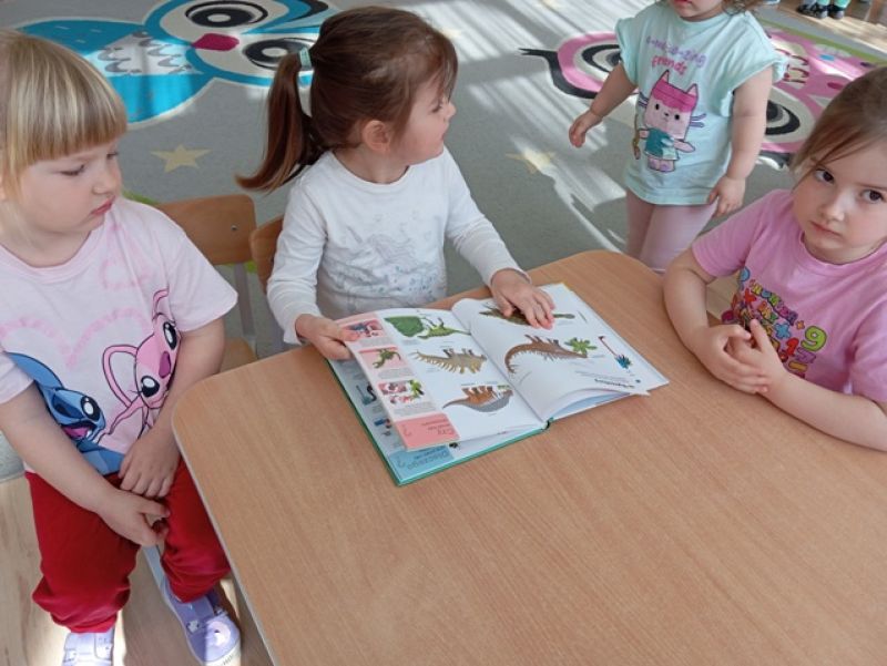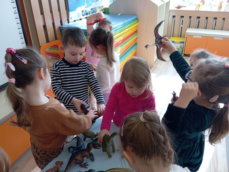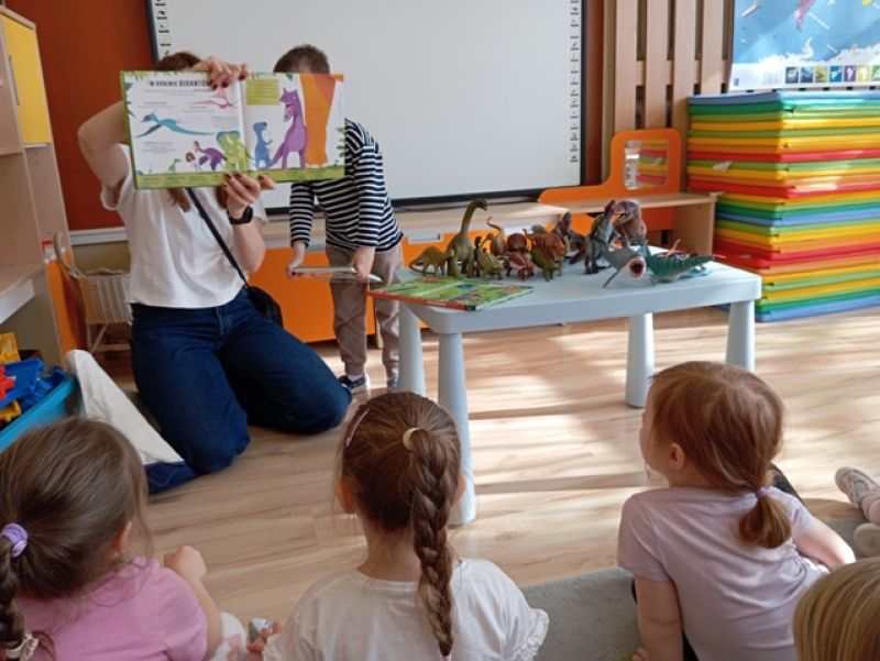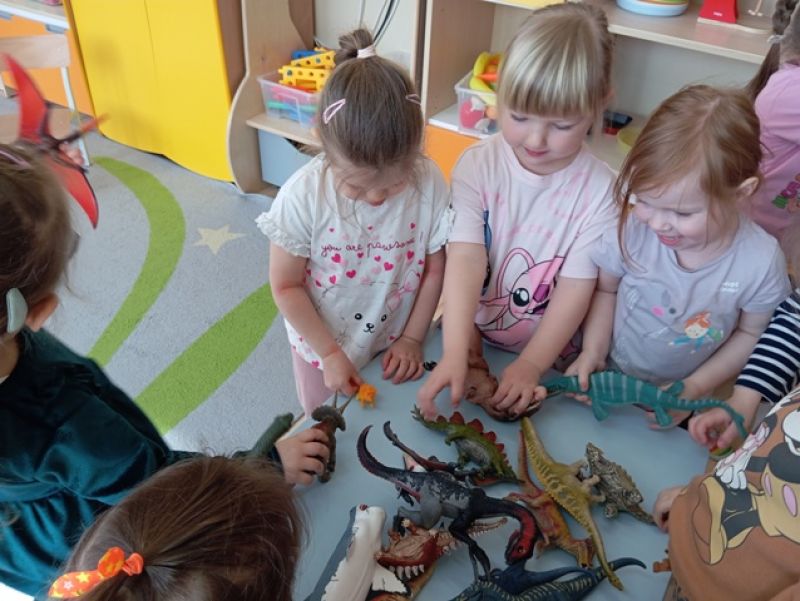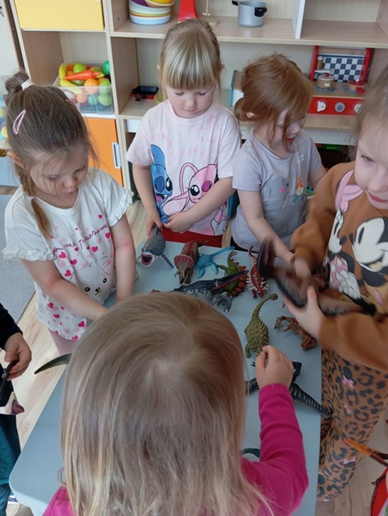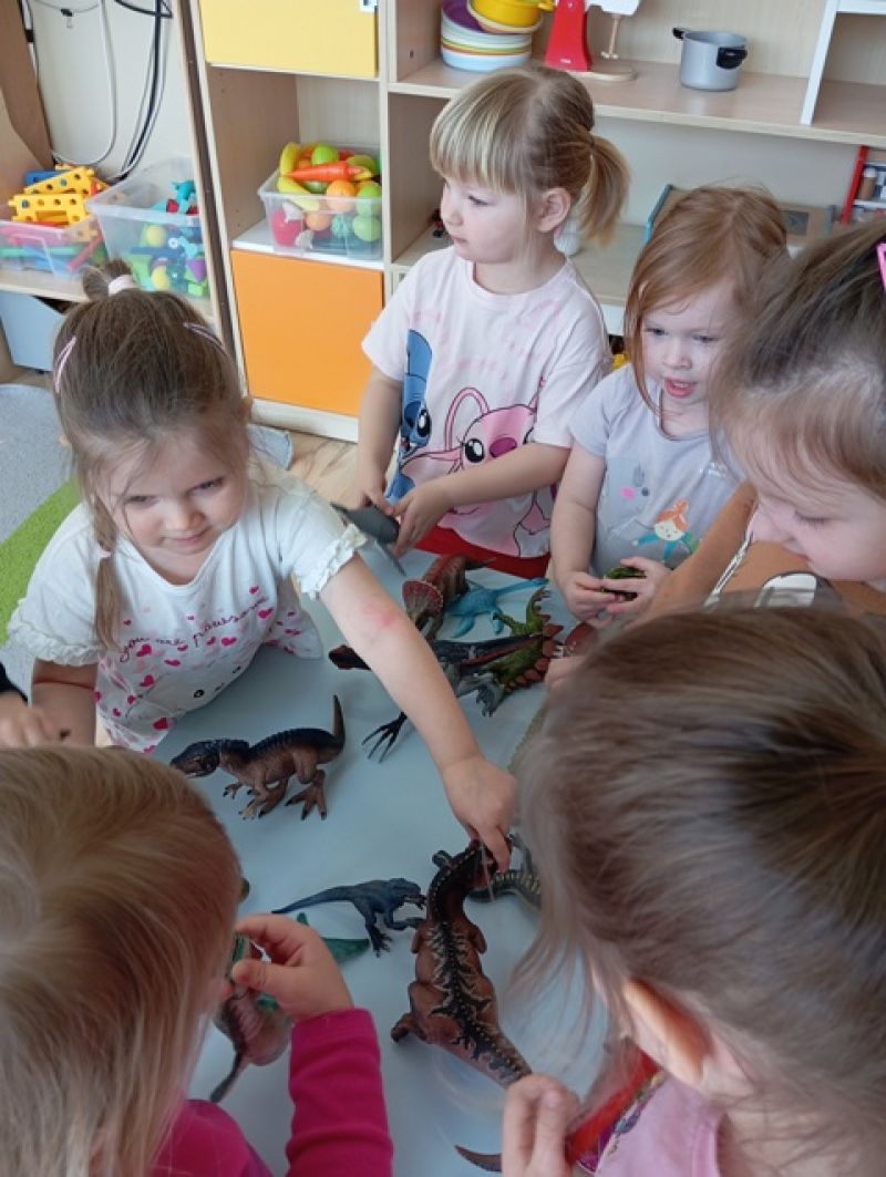 16.03.2026 - Kuba z grupy I zaprezentował dzieciom swoją kolekcję dinozaurów oraz książki o tych prehistorycznych zwierzętach.