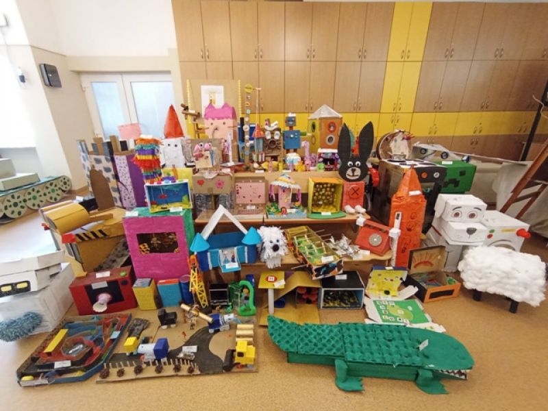 Konkurs cieszył się dużym zainteresowaniem, aktywizując dzieci i ich rodziny do twórczej aktywności. Na konkurs wpłynęło 68 prac. Każda praca była wspaniała i wyjątkowa. Uczestnicy wykazali się ogromną pomysłowością, kreatywnością i zaangażowaniem, wykorzystując nie tylko karton, ale również materiały z recyklingu, elementy naturalne oraz różne techniki konstrukcyjne. Były wśród nich różnych rozmiarów zwierzęta (psy, koty, koniki, dinozaury, smoki, krokodyl, a nawet całe ZOO), pojazdy (samochody, pociągi, traktory, samoloty, rakiety, czołg), budowle (zamki, domki, wieże), a nawet bardzo realistyczny plac budowy. Ogromnym zainteresowaniem zwiedzających wystawę cieszyły się gry planszowe i strategiczne, urządzenia techniczne (laptopy, roboty, telefon, aparat fotograficzny) oraz sprzęty gospodarstwa domowego (pralka, kuchnia z piekarnikiem, radio).