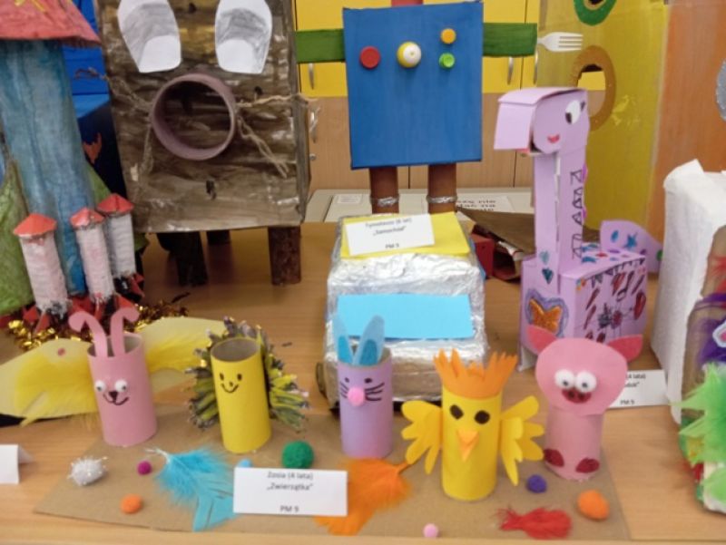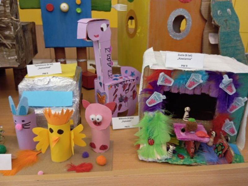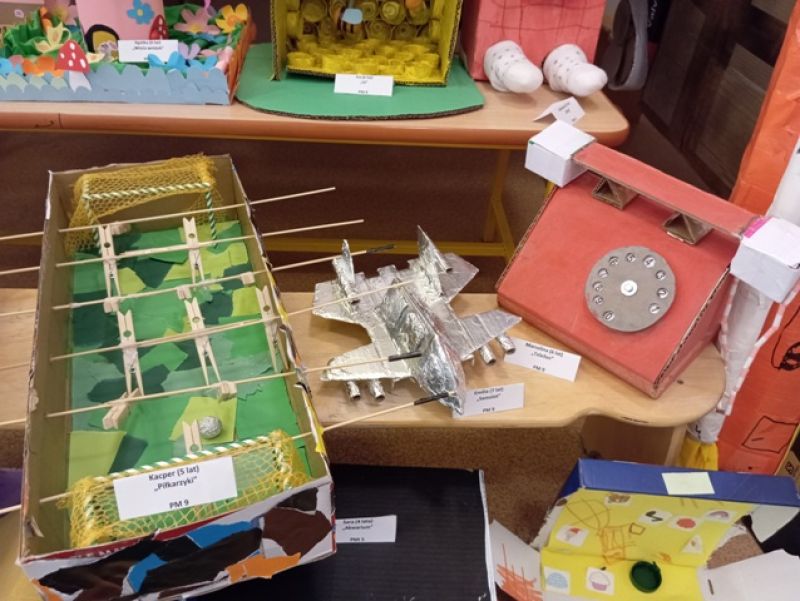 W marcu w Przedszkolu Miejskim nr 9 AKADEMIA PRZYGODY w Legionowie odbył się Międzyprzedszkolny Rodzinny Konkurs Plastyczno-Techniczny „Cuda z kartonu”, którego celem było rozwijanie kreatywności i wyobraźni twórczej dzieci oraz zachęcanie do twórczego spędzania czasu i działań konstrukcyjnych. Zadaniem uczestników konkursu było wykonanie zabawki z kartonu oraz innych surowców wtórnych, dowolną techniką plastyczno-techniczną.