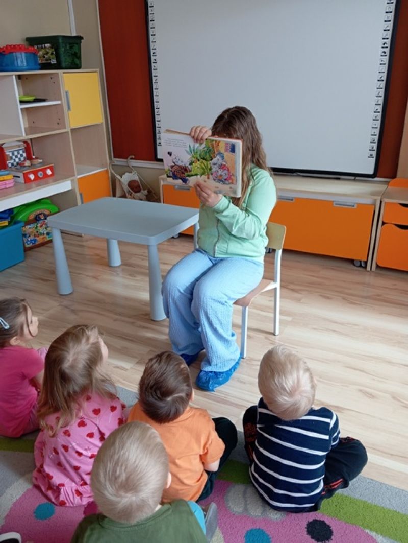 Hania przeczytała dzieciom wiersz Juliana Tuwima "Słoń Trąbalski",