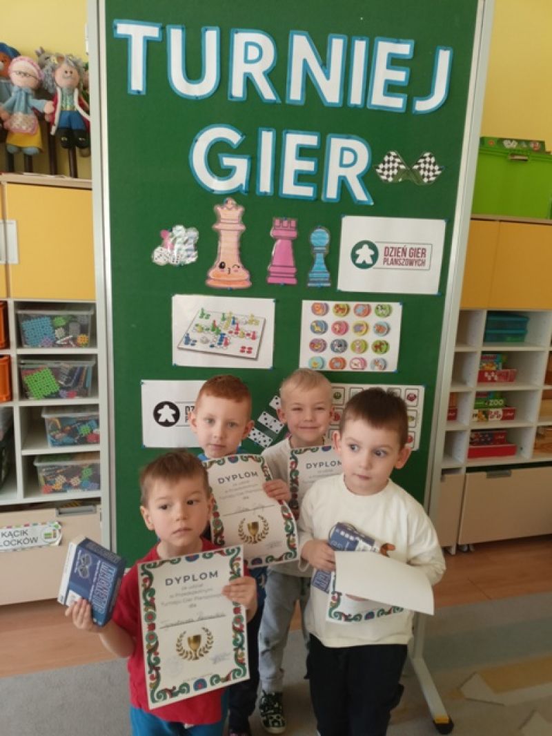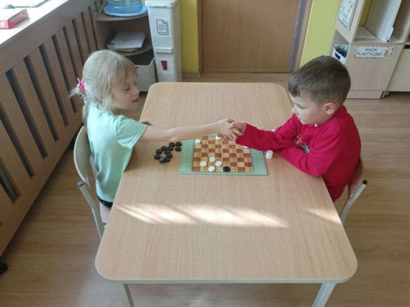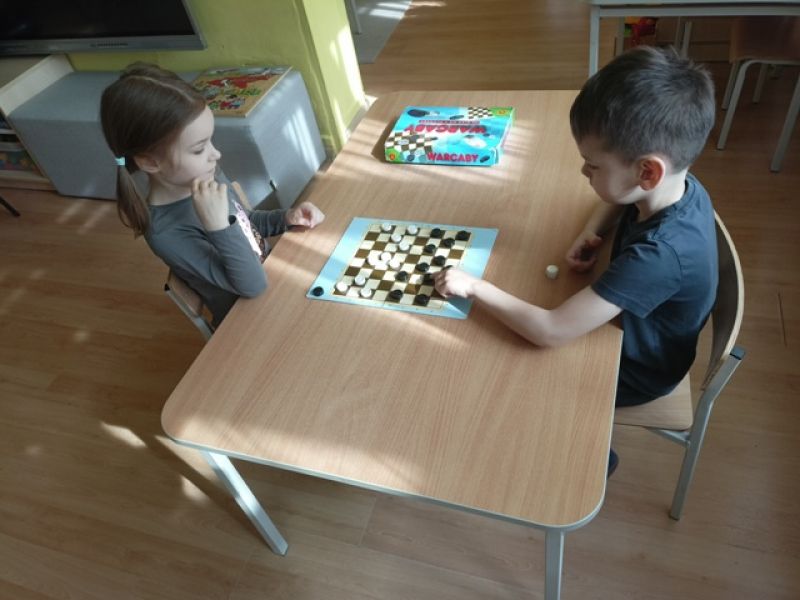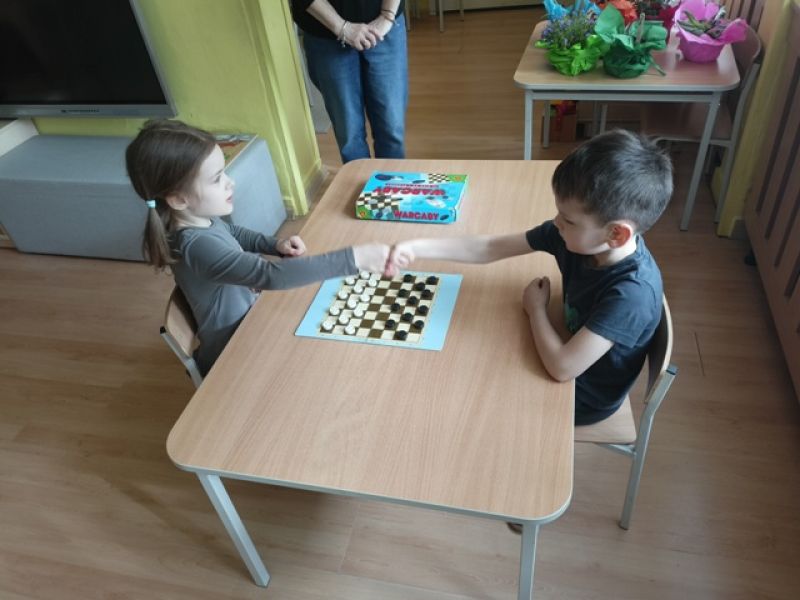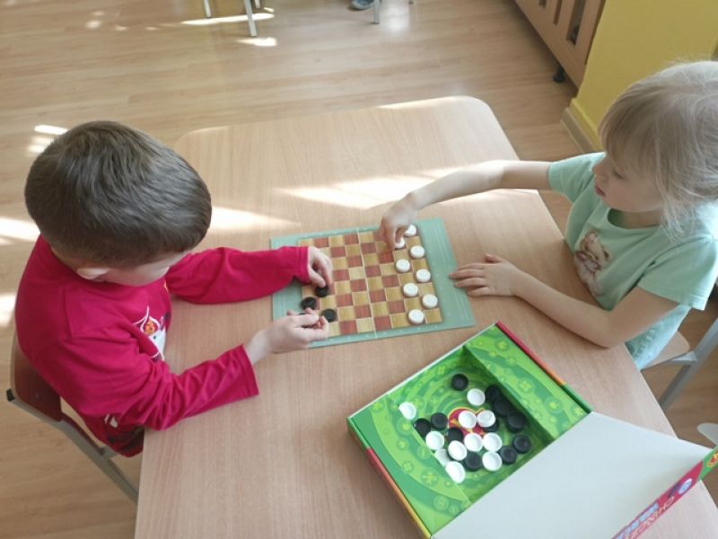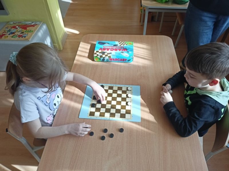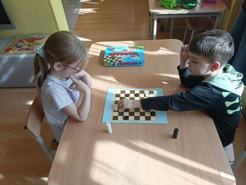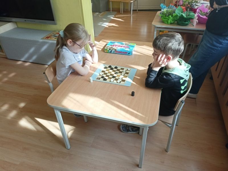 27.03.2026 - w naszym przedszkolu odbył się Turniej Gier Planszowych. Młodsi zawodnicy rywalizowali w memory, natomiast starsi grali w warcaby.
