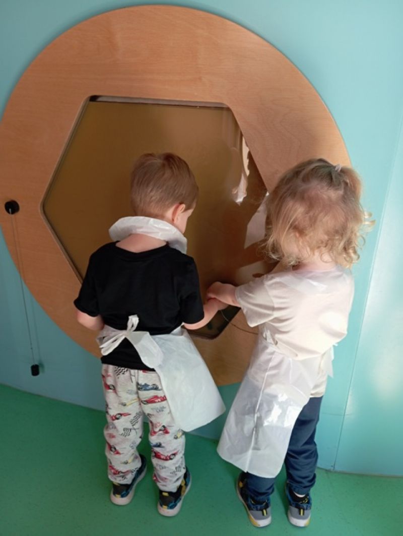 Wystawa Bzzz! to wydzielona przestrzeń stymulująca do nieskrępowanego eksperymentowania. Przedszkolaki bawiły się kierowane naturalną ciekawością, a przy okazji uczyły się przez działanie i towarzyszące emocje.