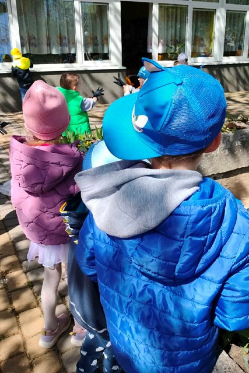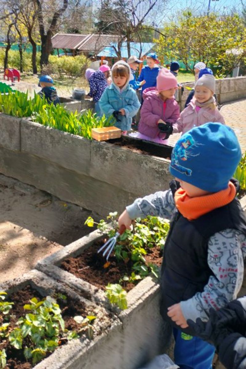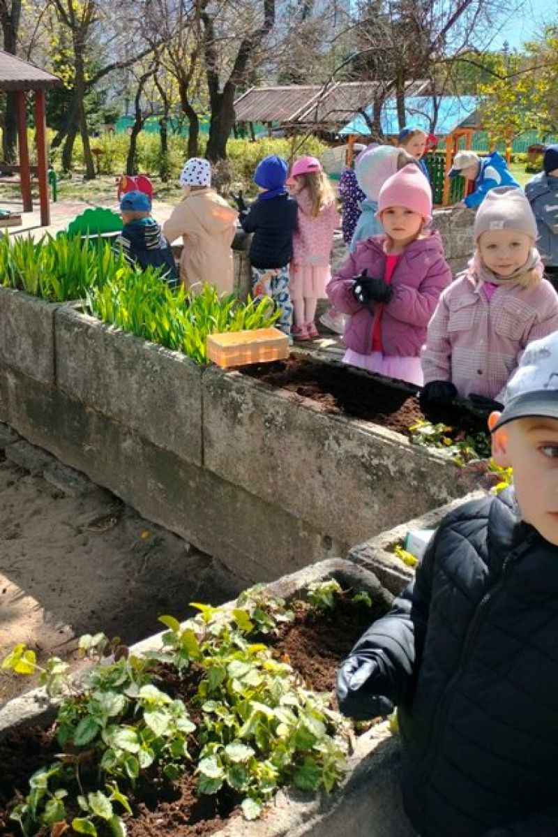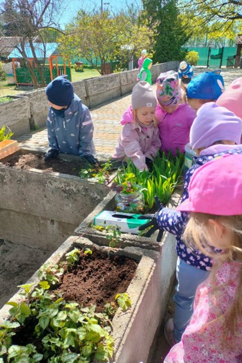 24.04.2026 - dzieci z grup II i IV porządkowały gazony, a przy okazji dosadzały w nich kwiaty. Właśnie tak obchodziły Dzień Ziemi.